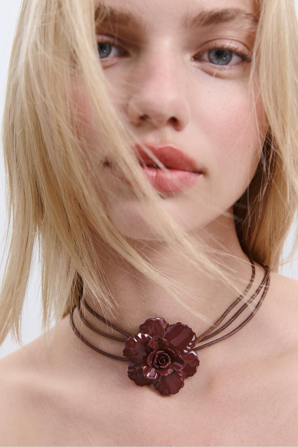 Metalik çiçekli kordon kolye Metalik çiçekli kordon kolye 03441711 تک سایز