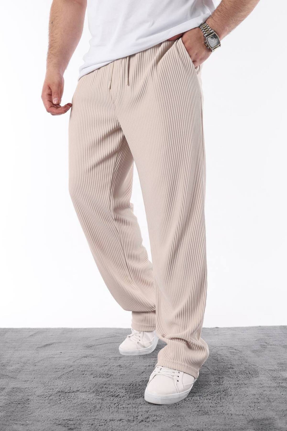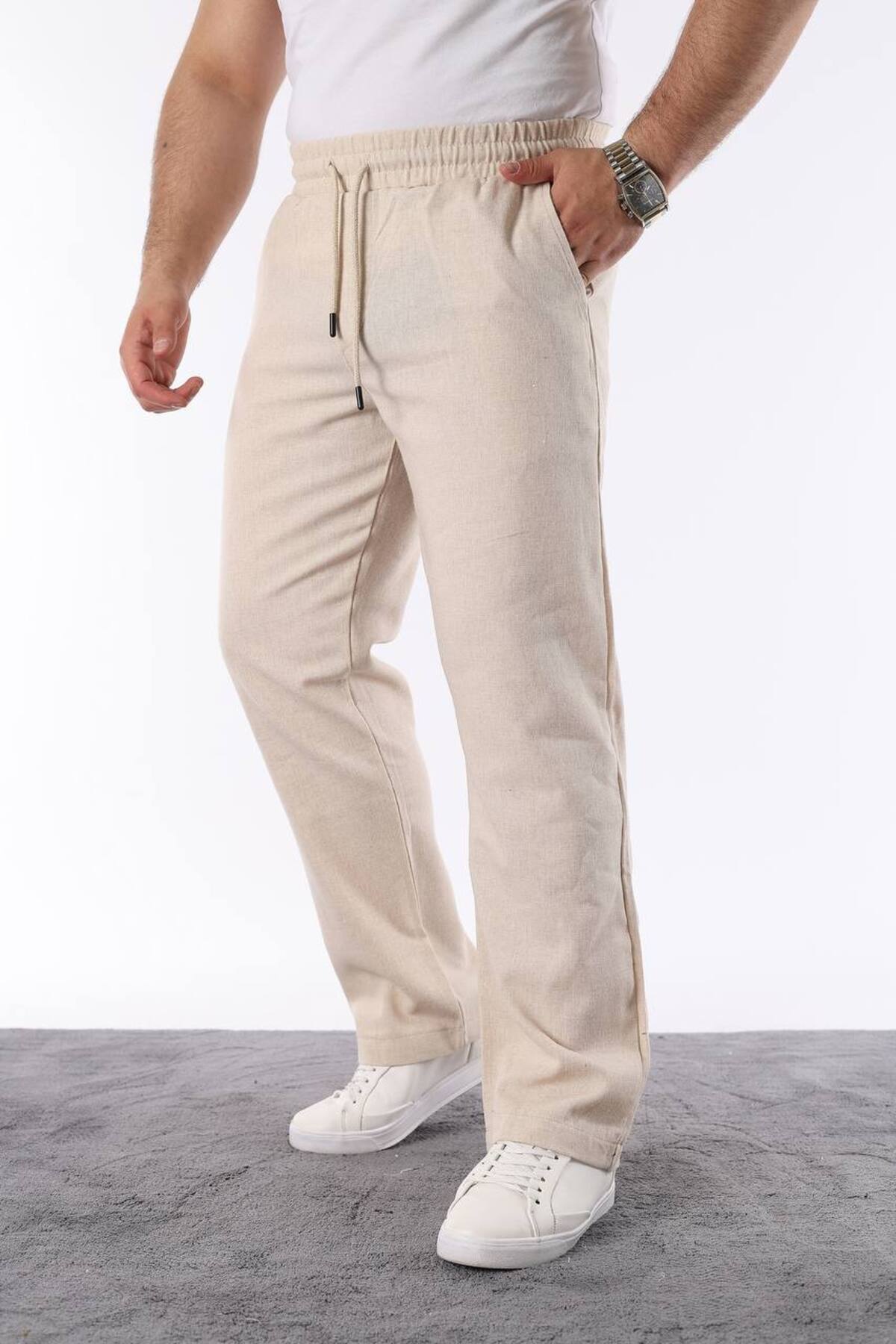 Erkek Haki Renk Lastikli Bel Rahat Kesim Keten Pantolon Erkek Haki Renk Lastikli Bel Rahat Kesim Keten Pantolon 5253 2XL