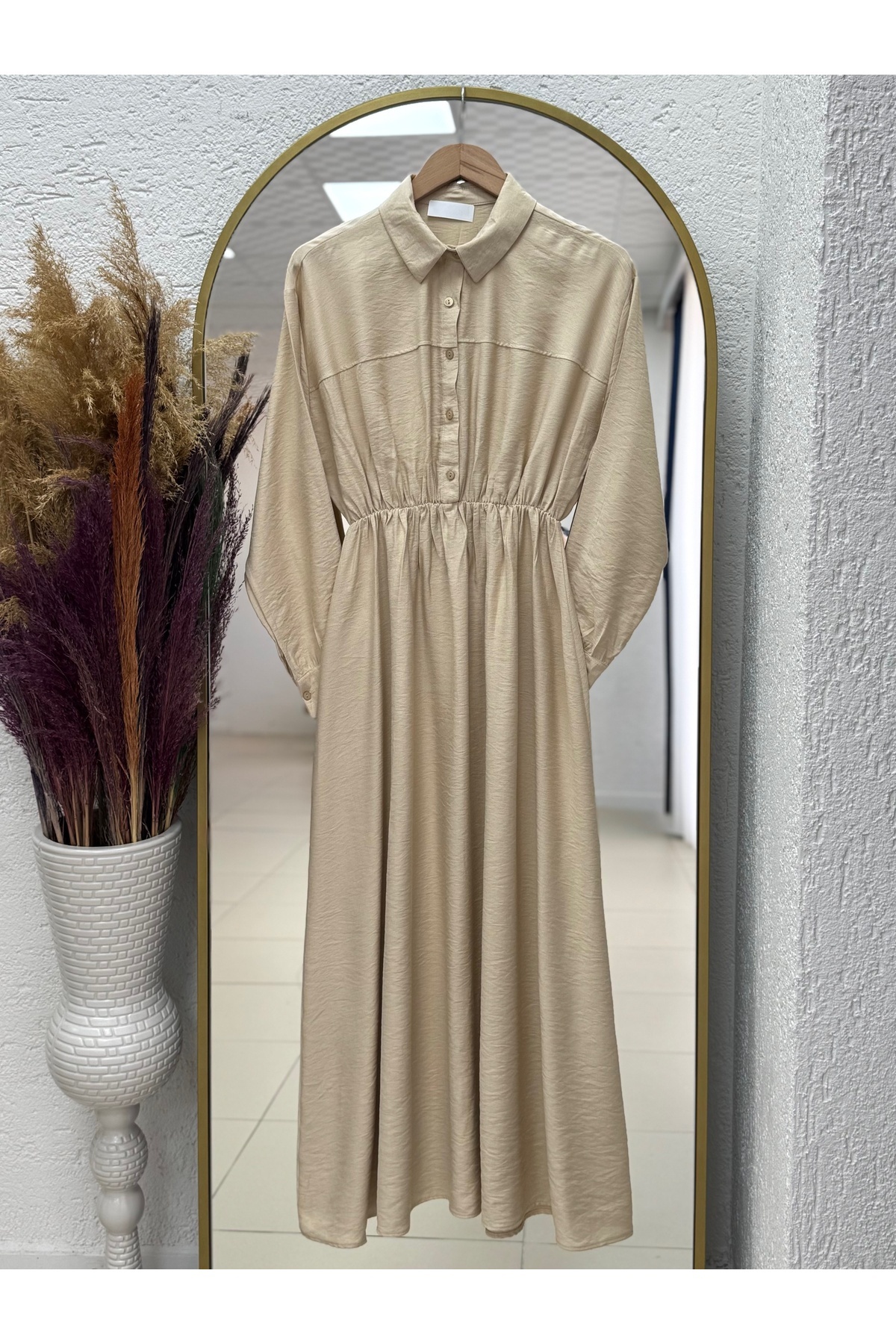 Mireva Yarım Patlı Beli Lastikli Elbise-AS4078 Bej Mireva Yarım Patlı Beli Lastikli Elbise-AS4078 Bej HAN25YEbr00000524ER L/XL