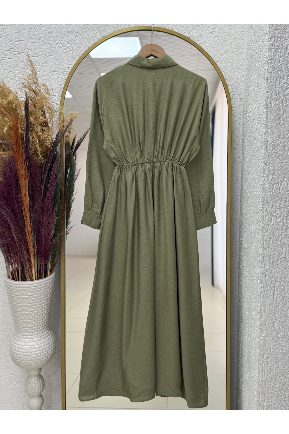 Mireva Yarım Patlı Beli Lastikli Elbise-AS4078 Haki Mireva Yarım Patlı Beli Lastikli Elbise-AS4078 Haki HAN25YEbr00000524ER L/XL