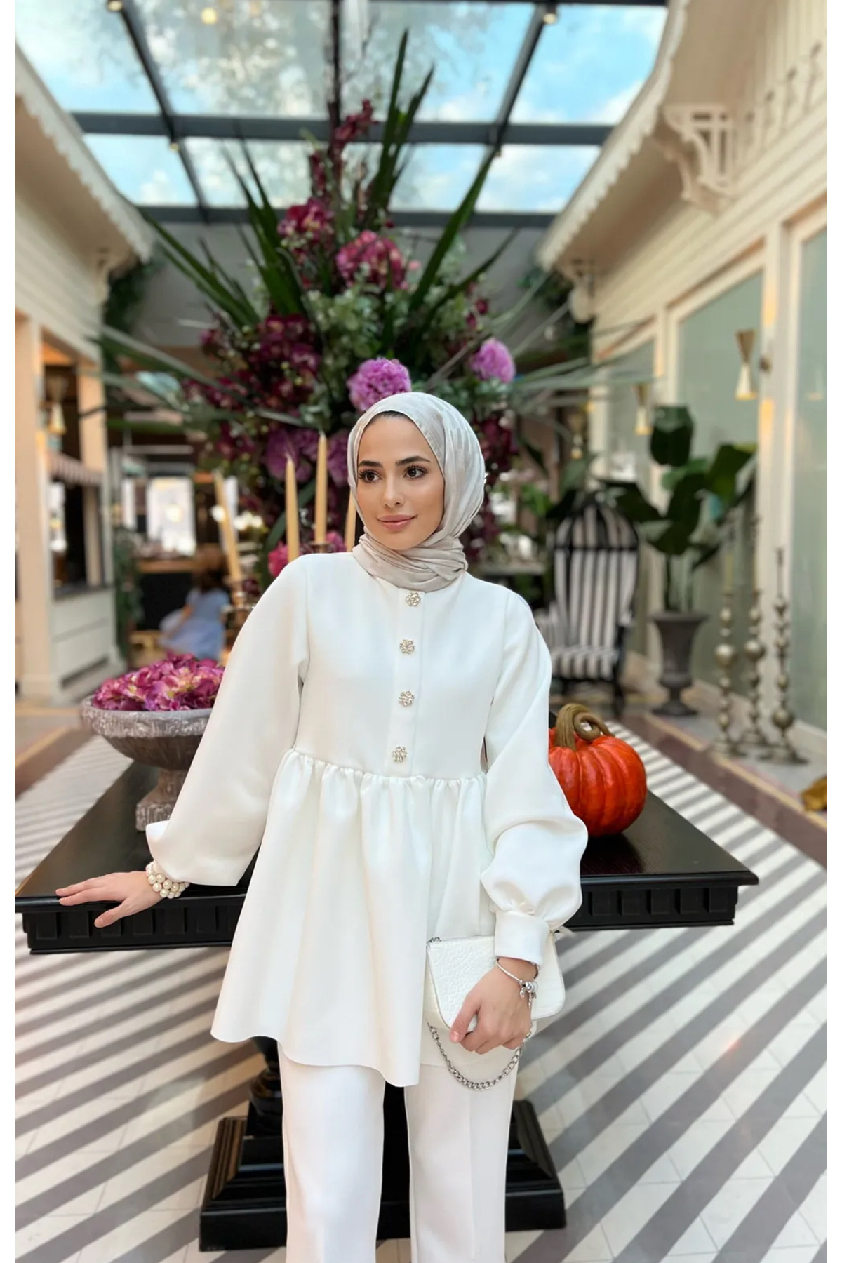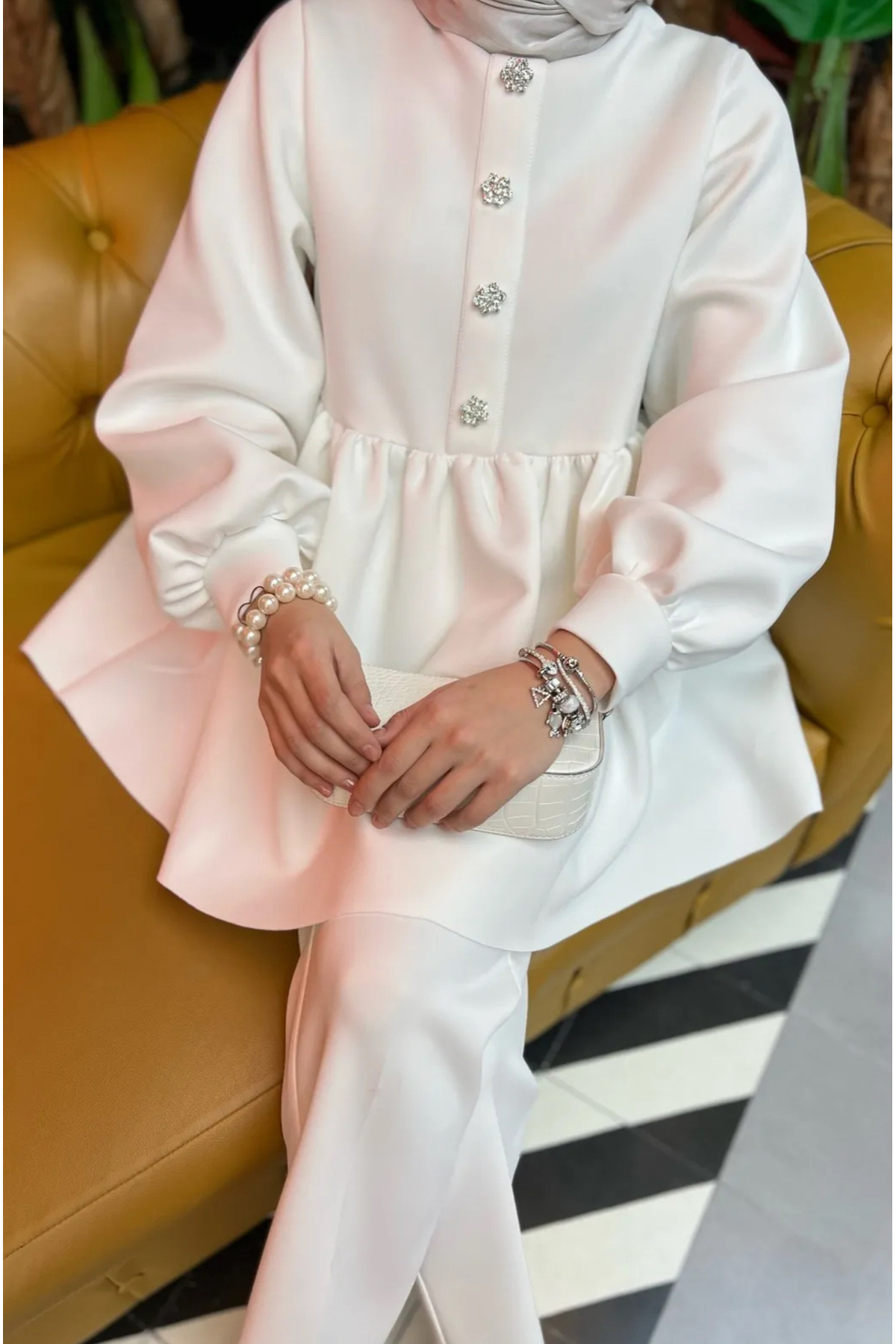 Krep Taş Düğmeli İkili Tesettür Takım Krep Taş Düğmeli İkili Tesettür Takım tmbsctrktkm 42