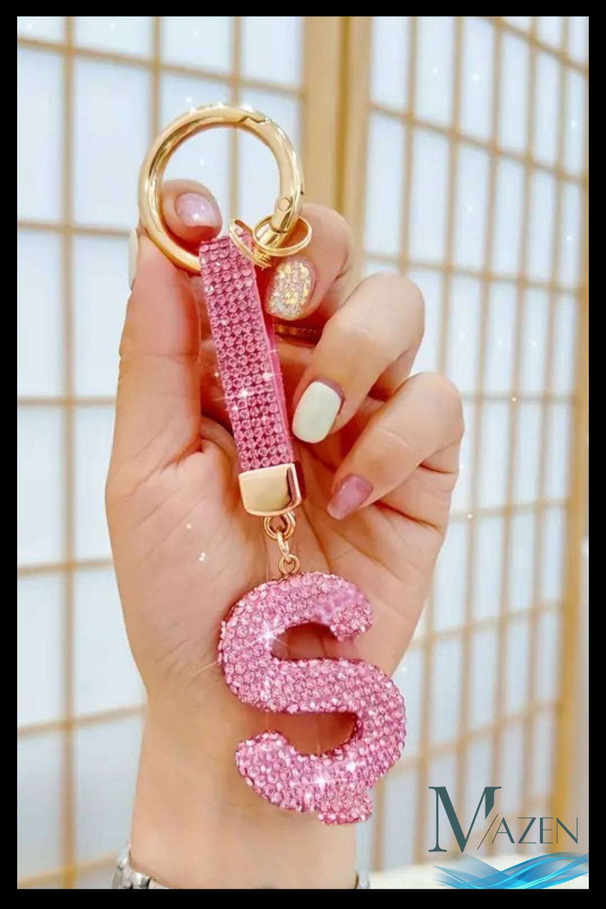 Pembe VIP S Harfi Anahtarlık | Taşlı Charm | Çanta Uyumlu Işıltılı Aksesuar harf