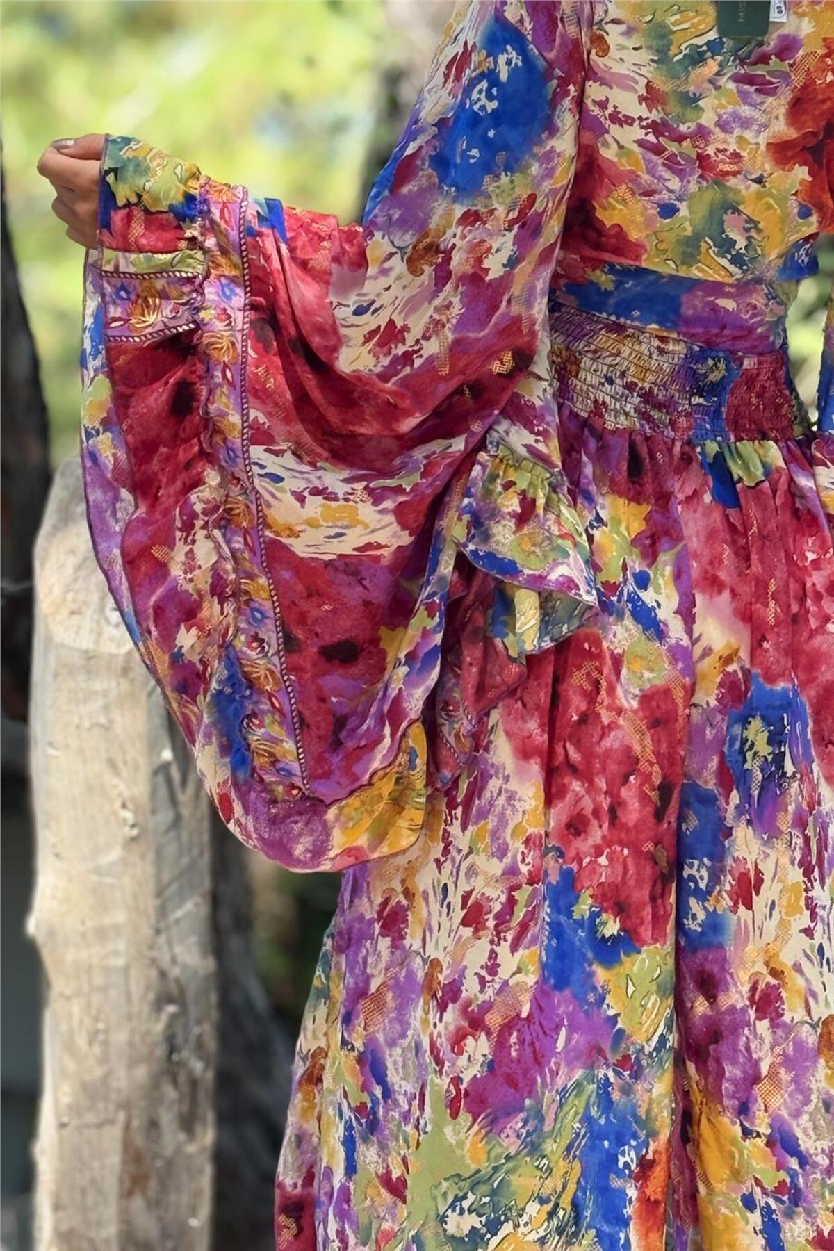 Pembe Renk Beli Nakışlı Gold Detaylı İpek Pantolon Bluz Takım Pembe Renk Beli Nakışlı Gold Detaylı İpek Pantolon Bluz Takım km091 Standart
