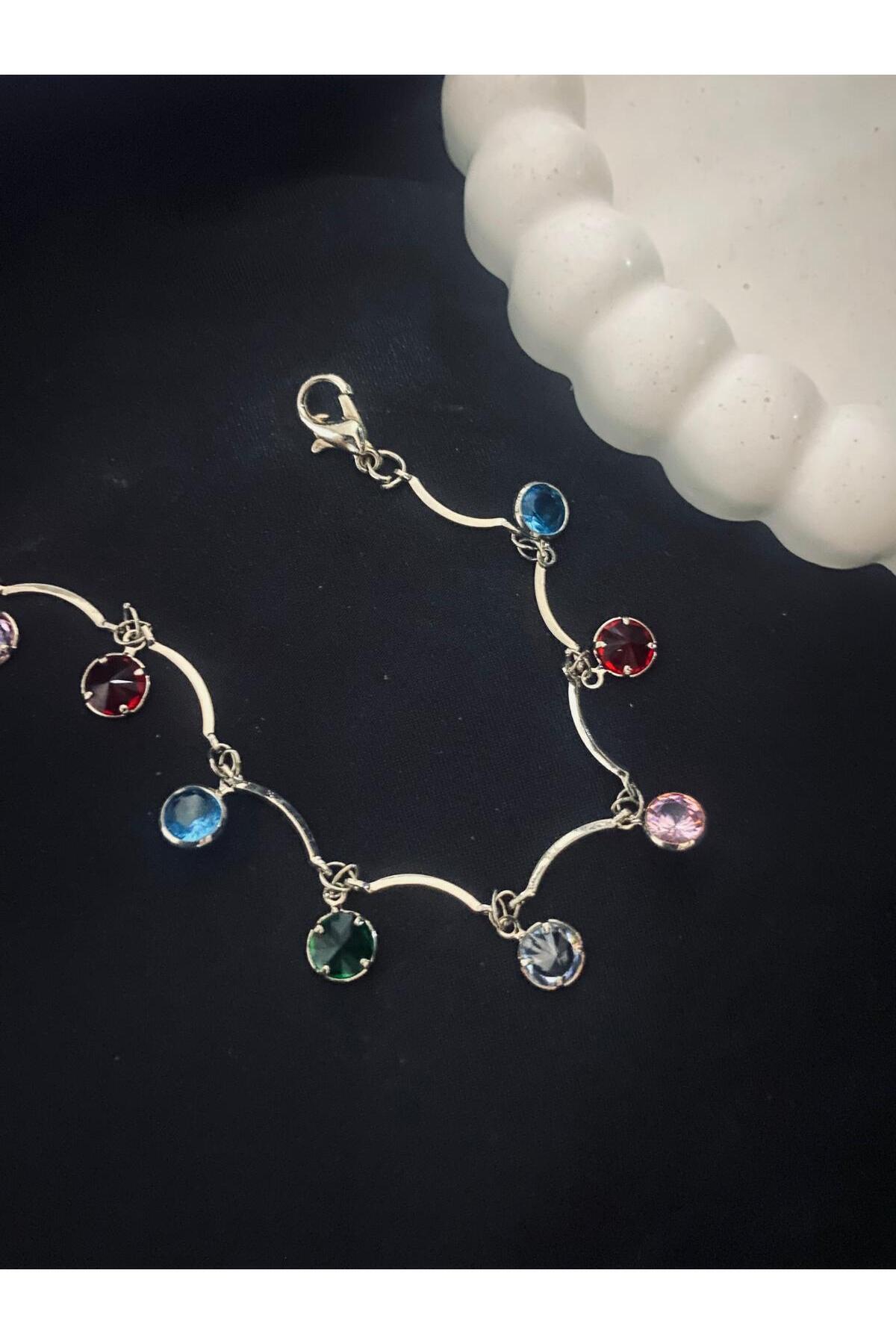 Renkli Taşlı Gümüş Kaplama Sallantı Figürlü Zincir Bileklik Renkli Taşlı Gümüş Kaplama Sallantı Figürlü Zincir Bileklik 8017 Standart