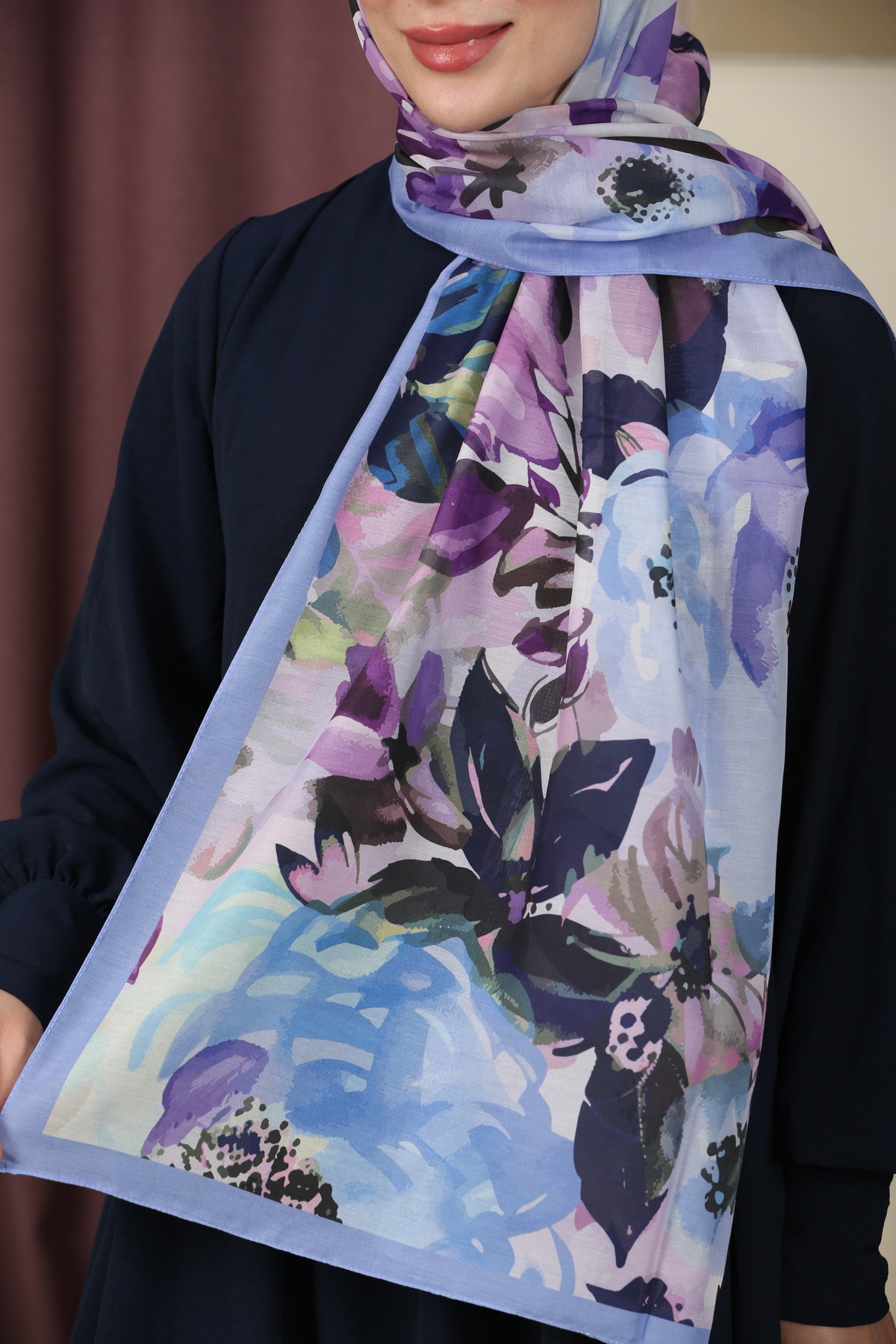Çiçek Desenli Pamuk Viskon Trend Şal Buz Mavi Çiçek Desenli Pamuk Viskon Trend Şal Buz Mavi ÇİÇEK_ŞAL 70 x 180