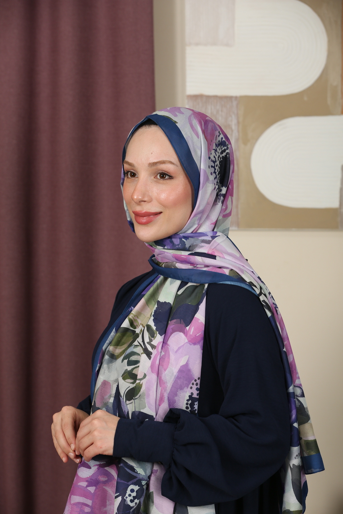 Çiçek Desenli Pamuk Viskon Trend Şal Indigo Eflatun Çiçek Desenli Pamuk Viskon Trend Şal Indigo Eflatun ÇİÇEK_ŞAL 70 x 180