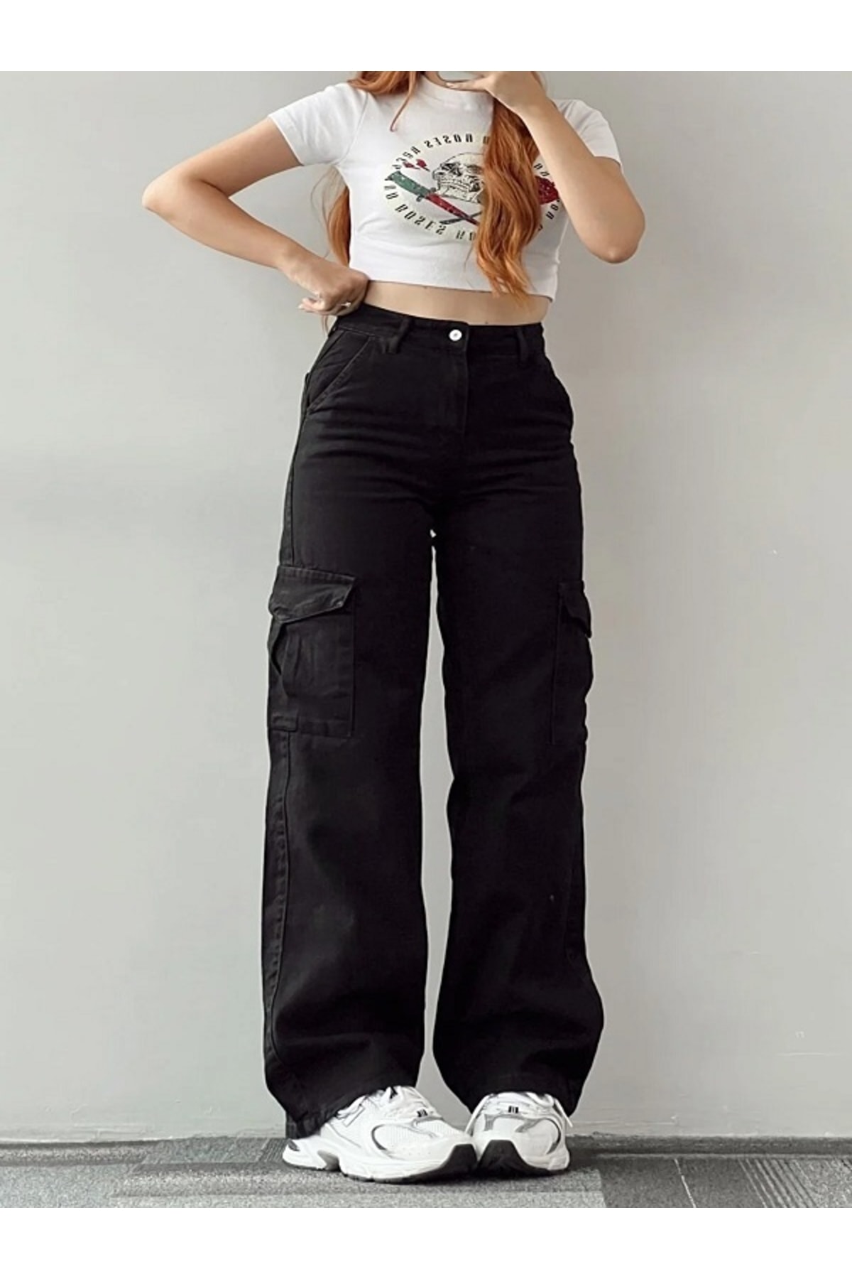 Kadın Kargo Cep Yüksek Bel Palazzo Salaş Kalıp Denim Pantolon Kadın Kargo Cep Yüksek Bel Palazzo Salaş Kalıp Denim Pantolon ECK5242 40