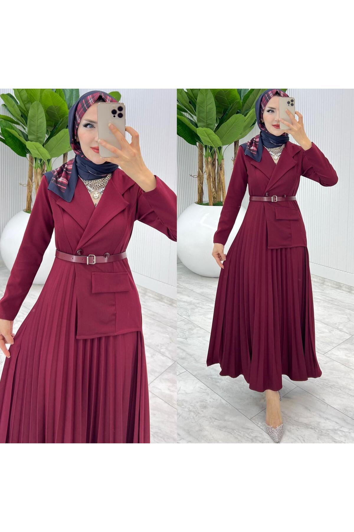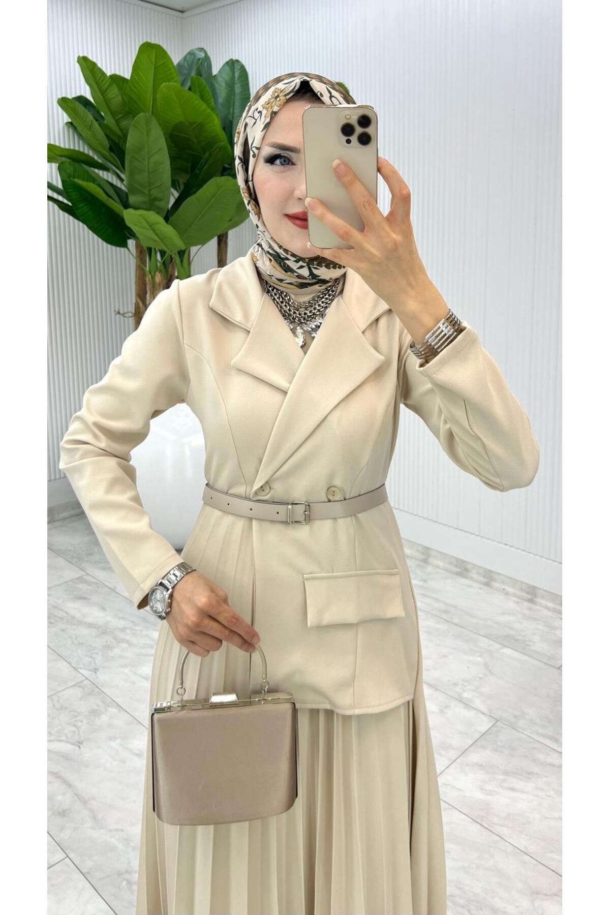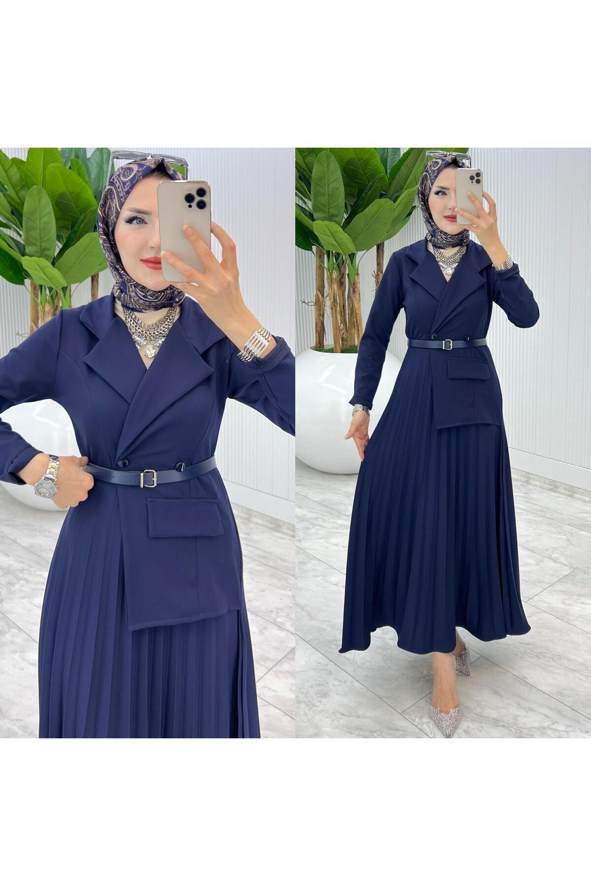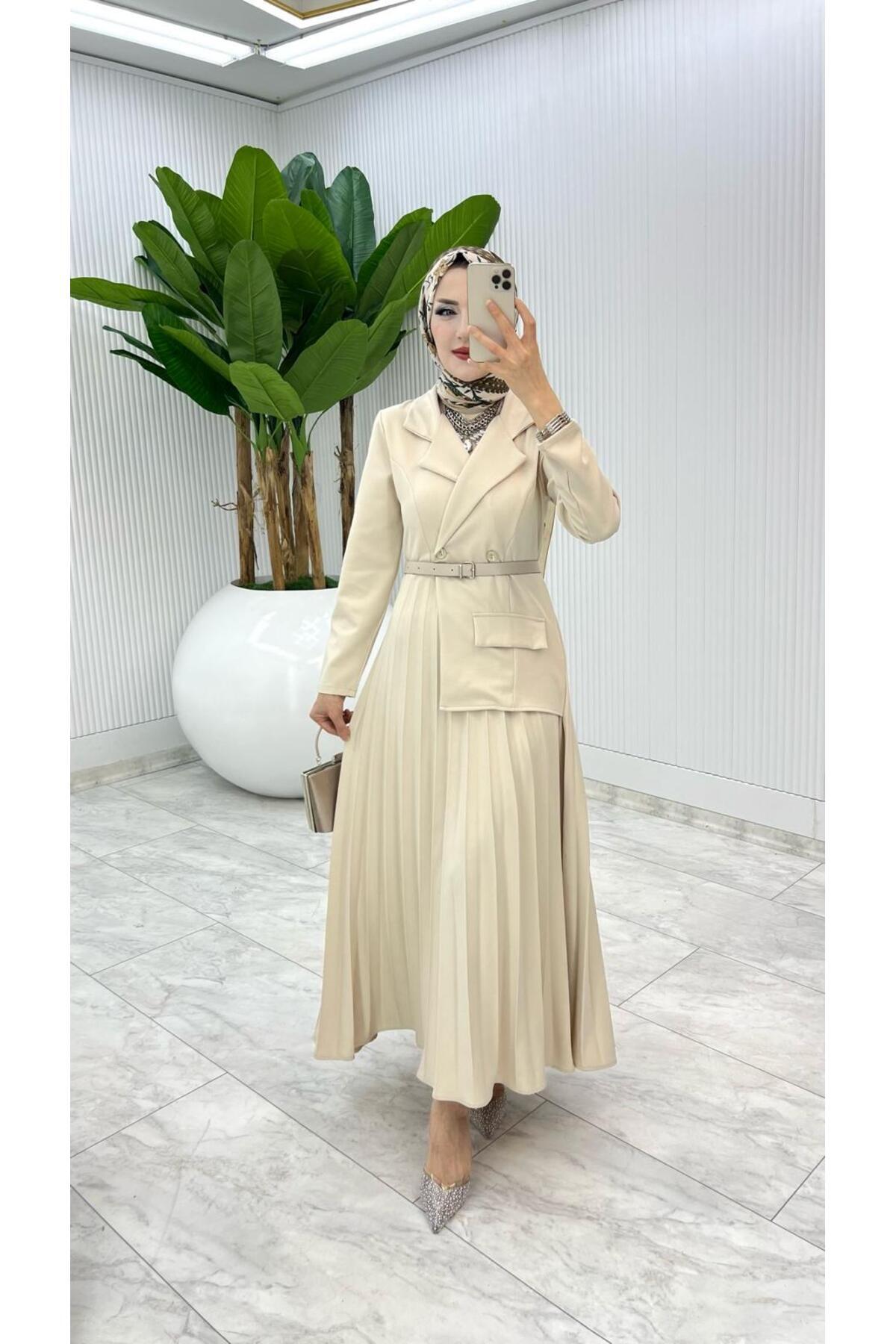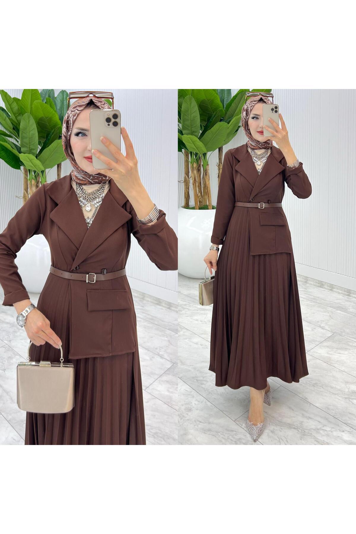 Ceket ve Pliseli Etekten oluşan Tek Parçalı Kadın Elbise Ceket ve Pliseli Etekten oluşan Tek Parçalı Kadın Elbise t2u2a2n2a2a3 5