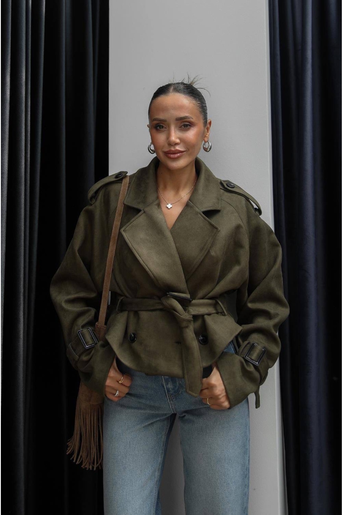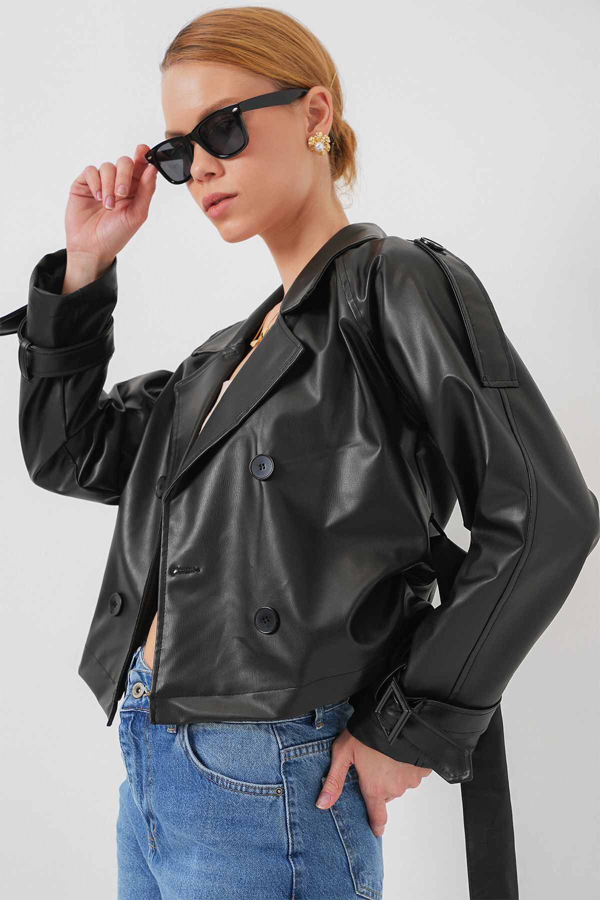 Kadın Siyah Kuşaklı Suni Deri Ceket DD01376 Kadın Siyah Kuşaklı Suni Deri Ceket DD01376 42