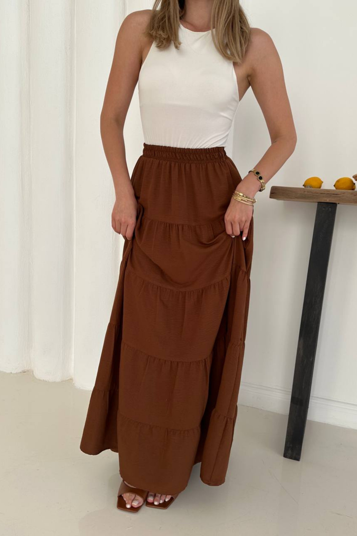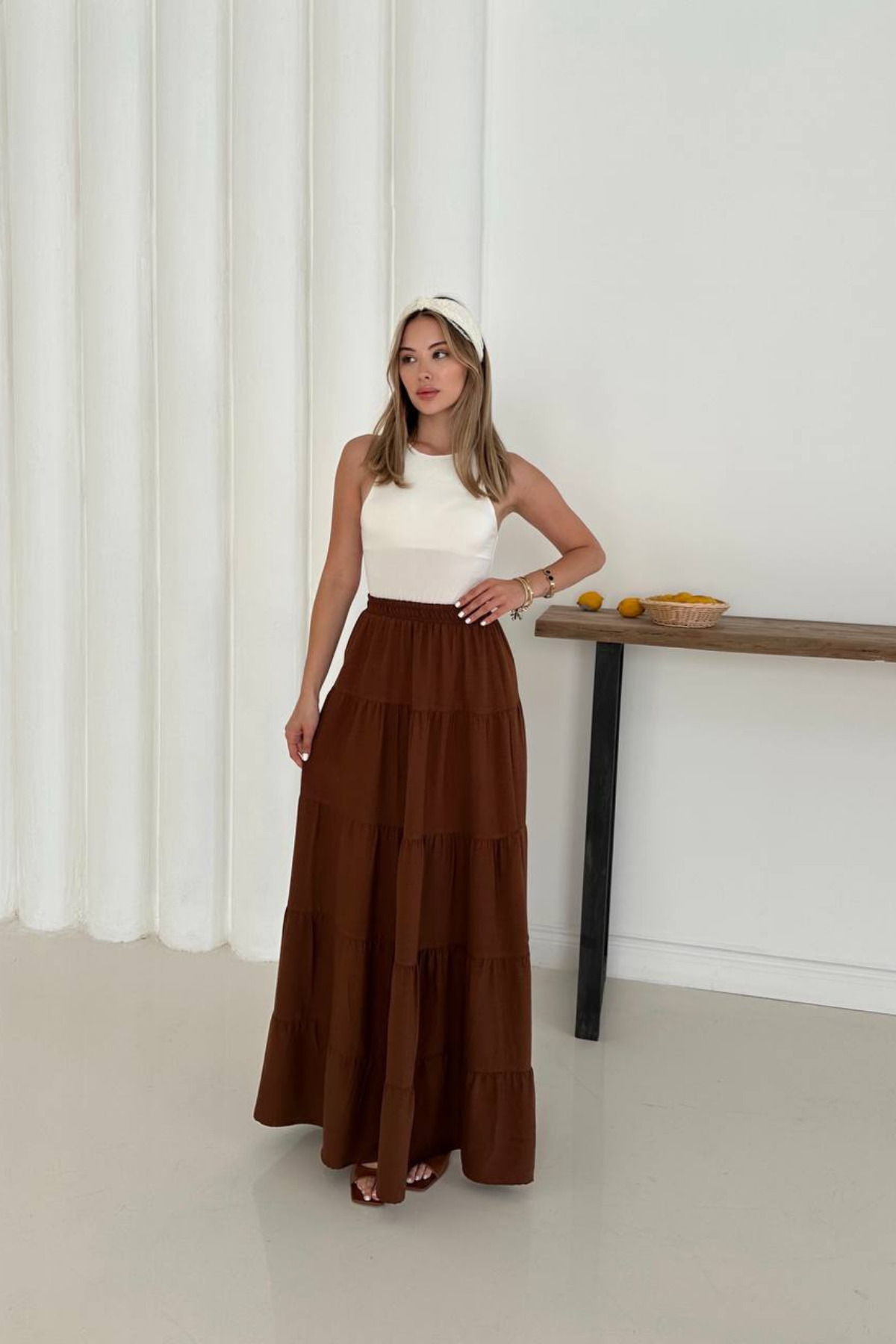 Kadın Kahvrengi Yüksek Bel Maxi Boy Kat Kat Fırfırlı Volanlı Etek Kadın Kahvrengi Yüksek Bel Maxi Boy Kat Kat Fırfırlı Volanlı Etek 2008 XL