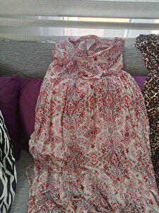Kadın Desenli Kısa Kol Elbise 2562 - Kırmızı Kadın Desenli Kısa Kol Elbise 2562 - Kırmızı 2562BGD19 42