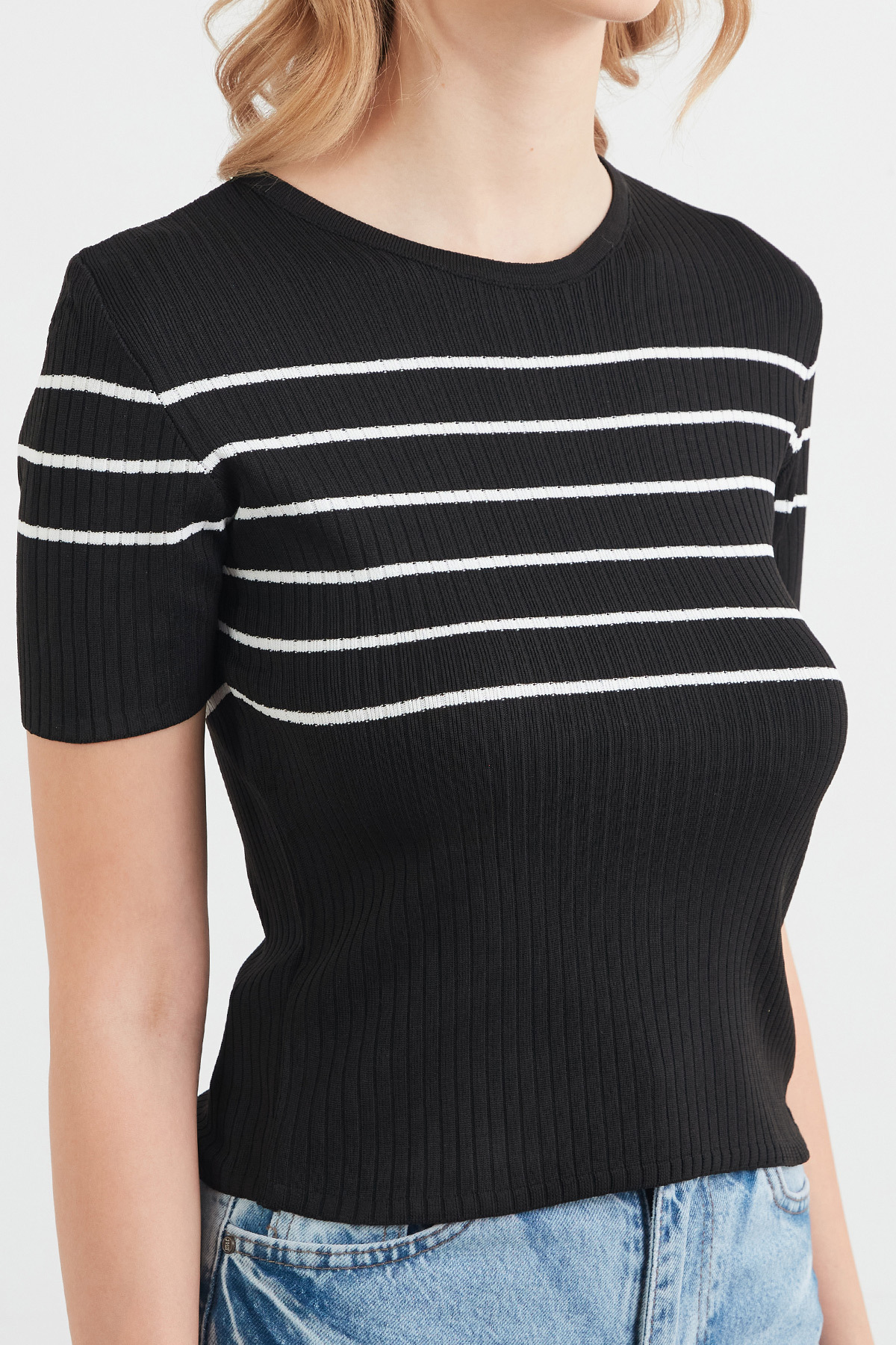Çizgili Fitilli Bisiklet Yaka Triko Bluz Çizgili Fitilli Bisiklet Yaka Triko Bluz 25YGB7726129780 S/M
