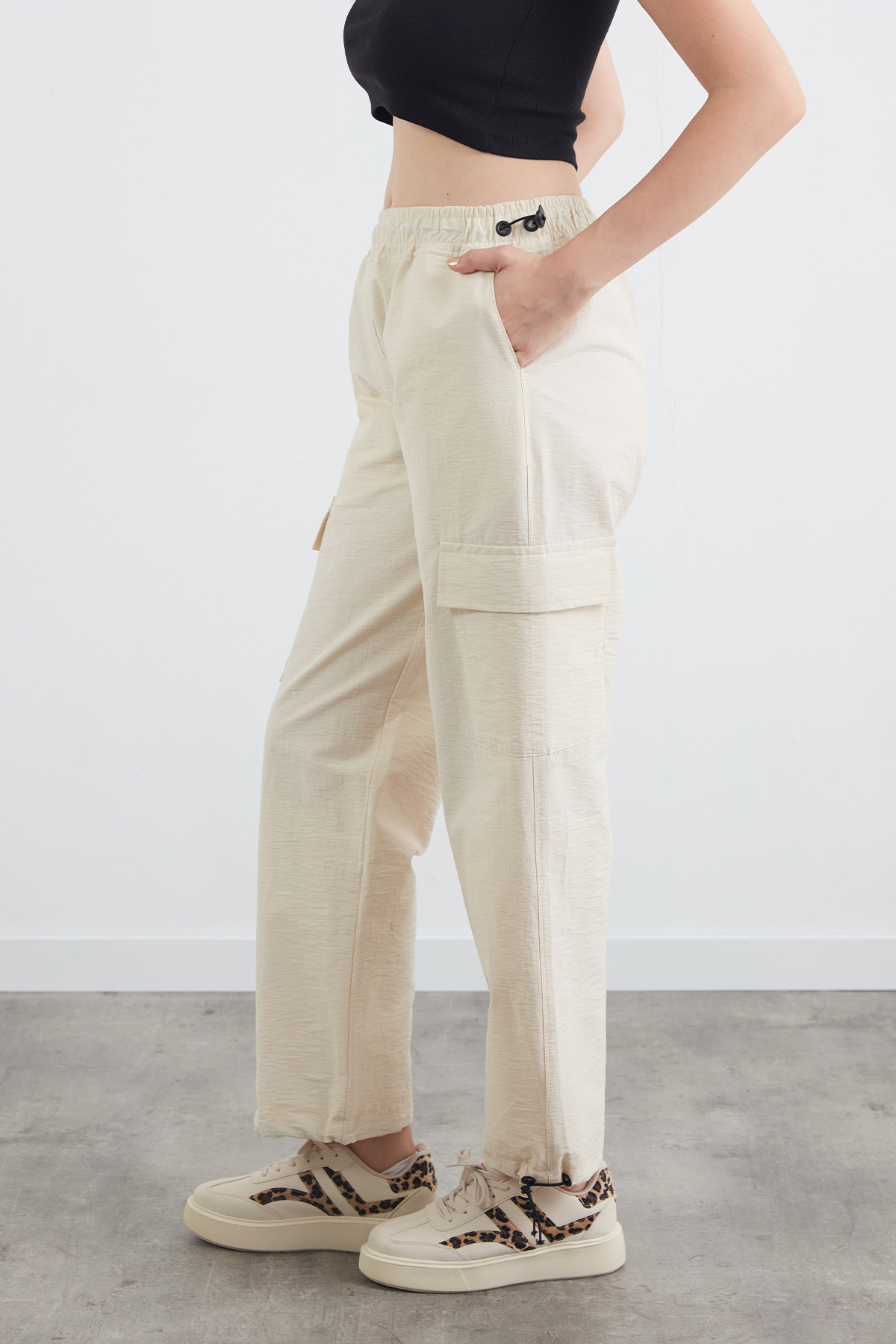 Beli Ve Paçası Stoperli Kargo Cepli Paraşü Pantolon Beli Ve Paçası Stoperli Kargo Cepli Paraşü Pantolon 25YGB734215535 L