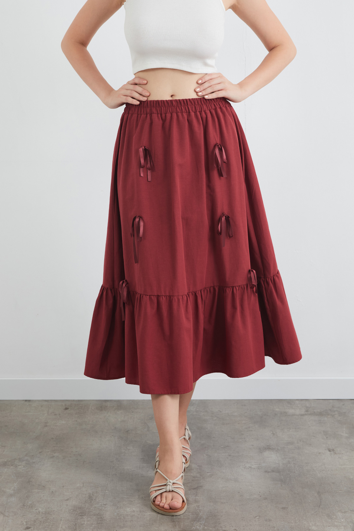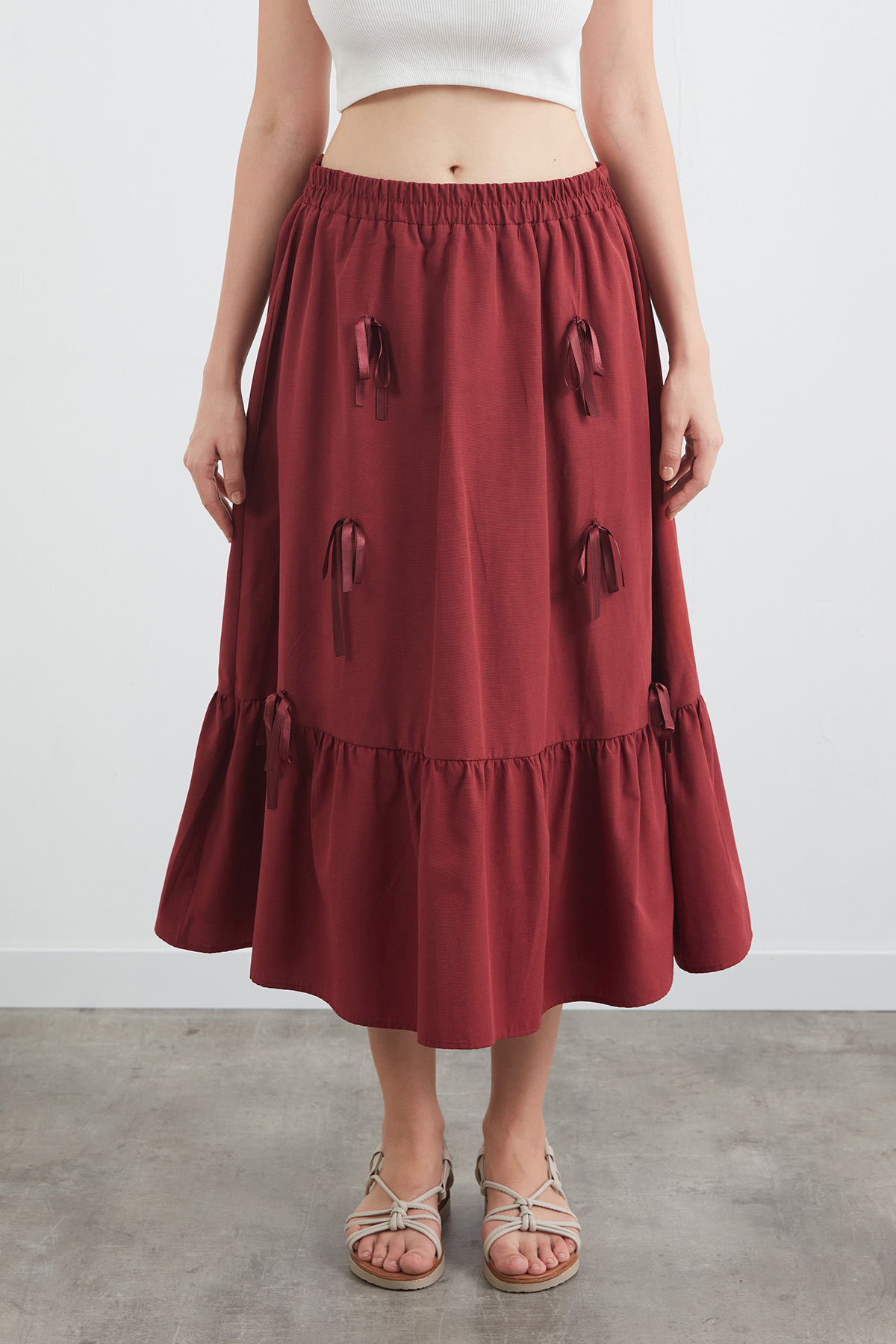 Beli Lastikli Kurdeleli Etek Beli Lastikli Kurdeleli Etek 25YGB8008129462 L
