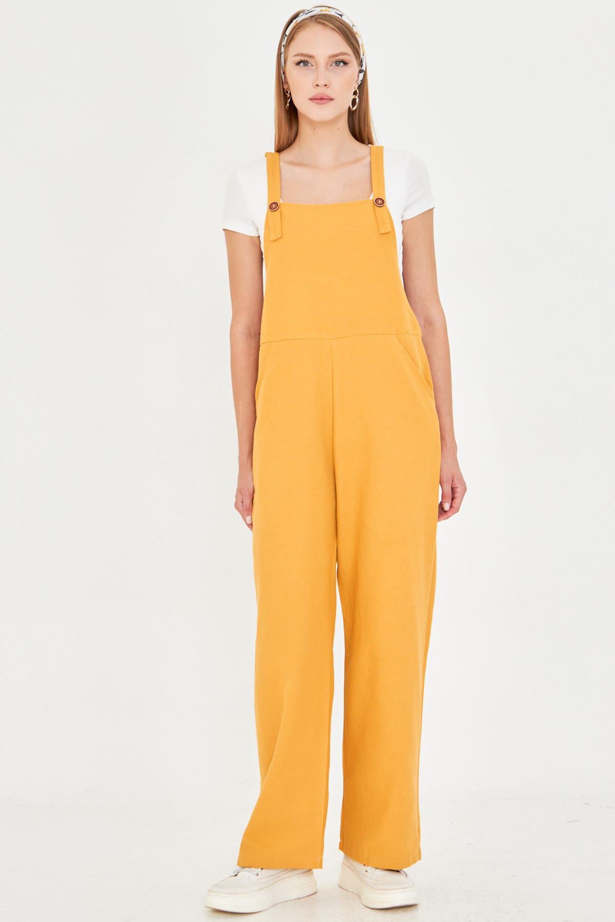 Kadın Sarı Cepli Geniş Paçalı Bahçıvan Tulum ARM-25Y001043 Kadın Sarı Cepli Geniş Paçalı Bahçıvan Tulum ARM-25Y001043 XL