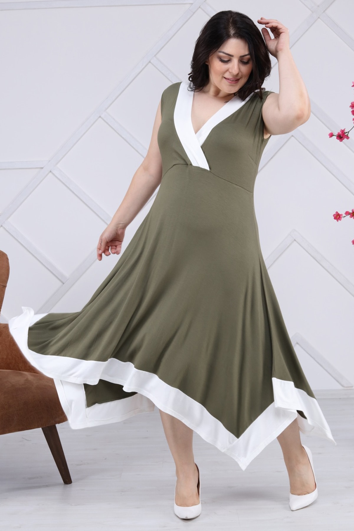 göğüs ve sırtı dantel dekolteli etek ucu fırfır detaylı buyuk beden tasarım elbise göğüs ve sırtı dantel dekolteli etek ucu fırfır detaylı buyuk beden tasarım elbise KHE-00176 54-56