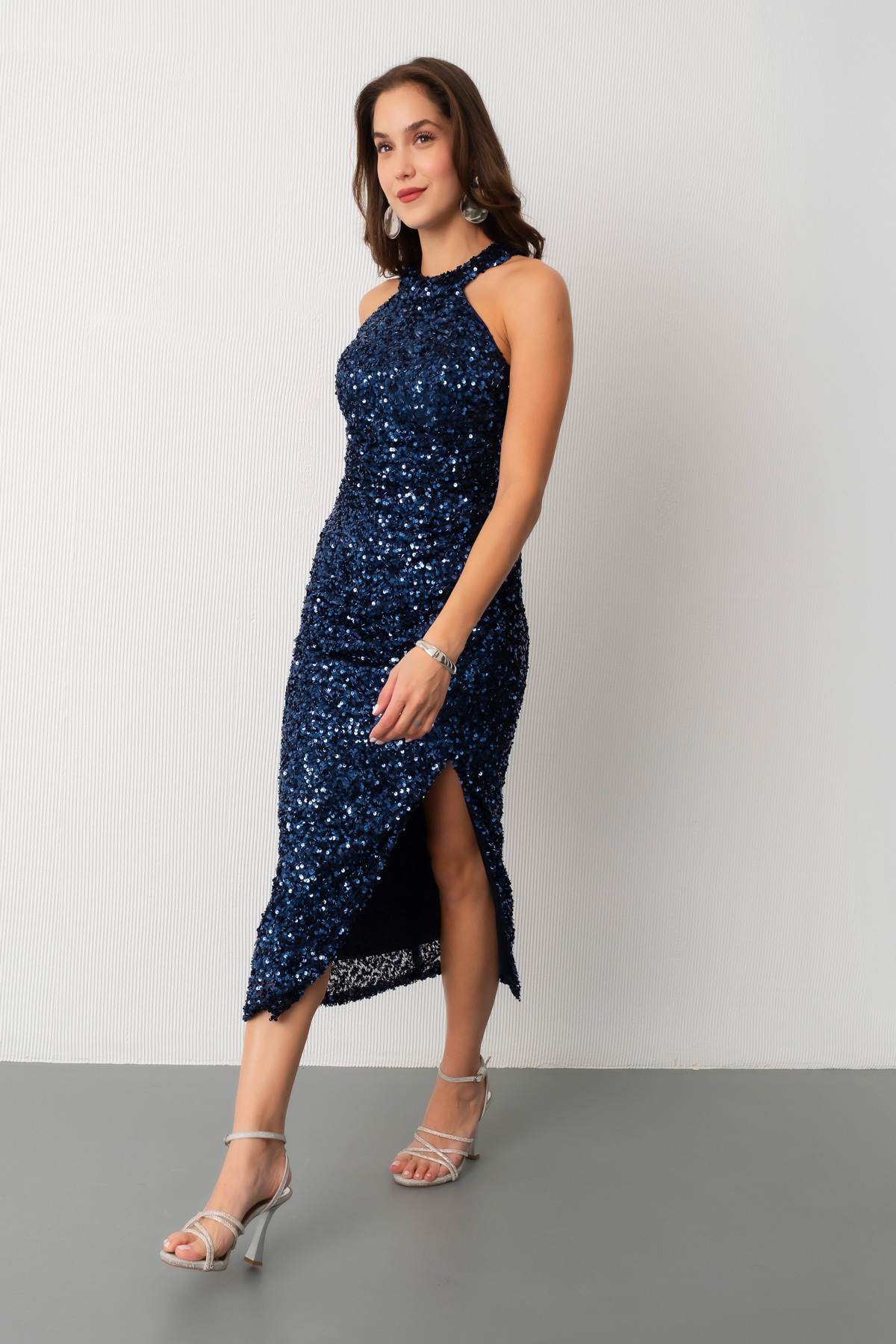 Kadın Lacivert Halter Yaka Pul İşlemeli Uzun Abiye Elbise Kadın Lacivert Halter Yaka Pul İşlemeli Uzun Abiye Elbise 25Y741838 42