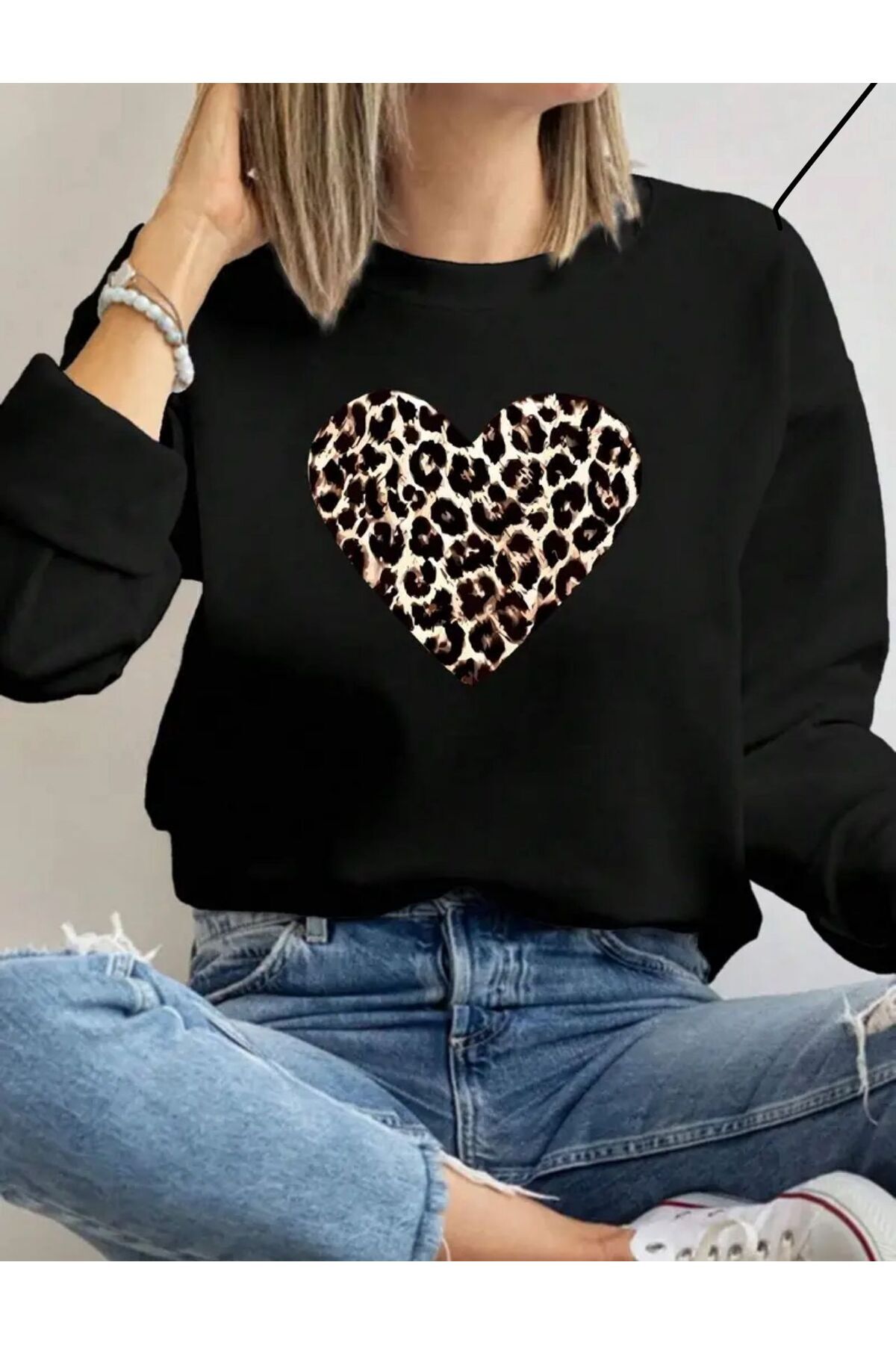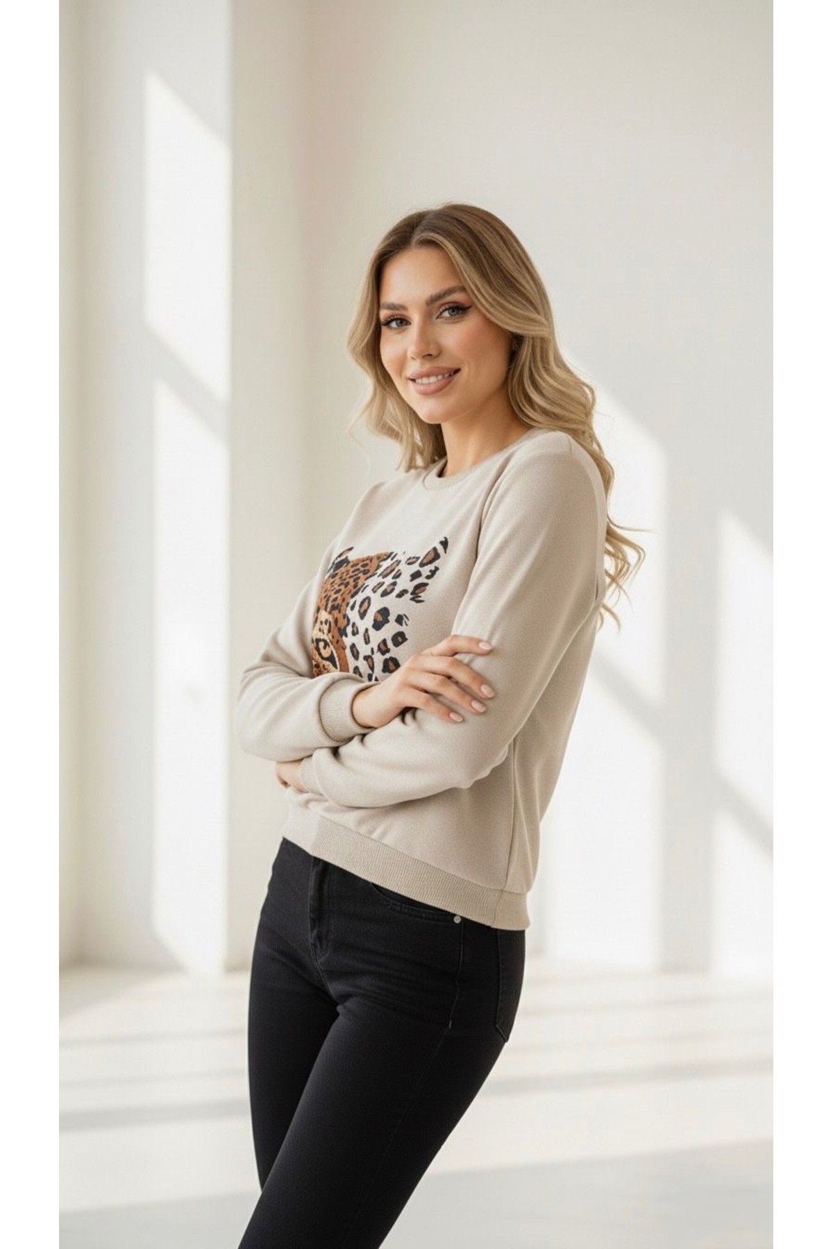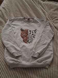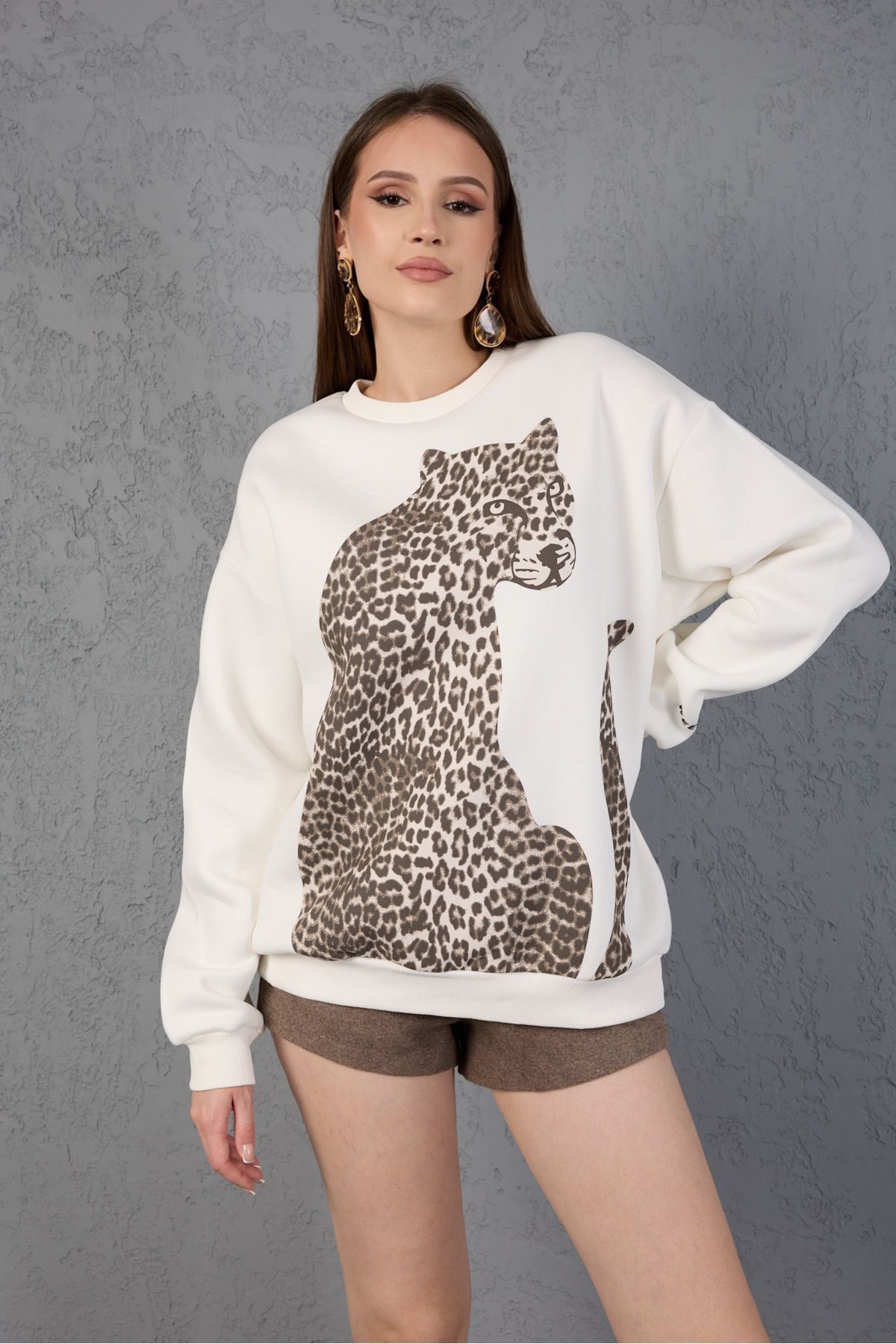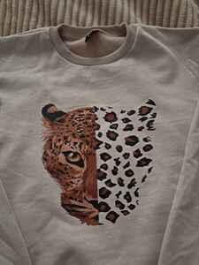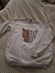 Yarım Yüz Leopar Baskılı Bisiklet Yaka Bej Sweatshirt Yarım Yüz Leopar Baskılı Bisiklet Yaka Bej Sweatshirt B.s28 2XL