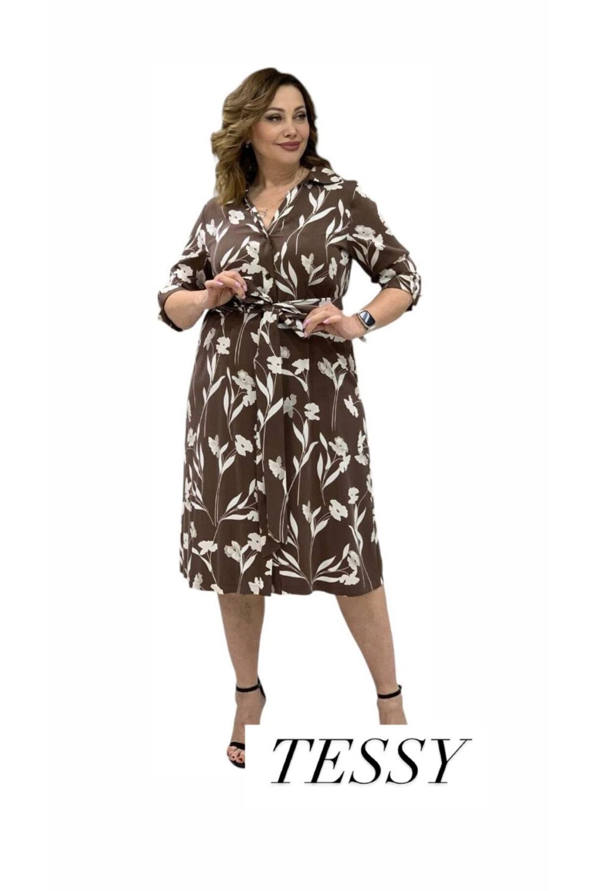 KADIN BÜYÜK BEDEN ÇİÇEK DESENLİ VİSKON ELBİSE KADIN BÜYÜK BEDEN ÇİÇEK DESENLİ VİSKON ELBİSE TESSY-7996 48