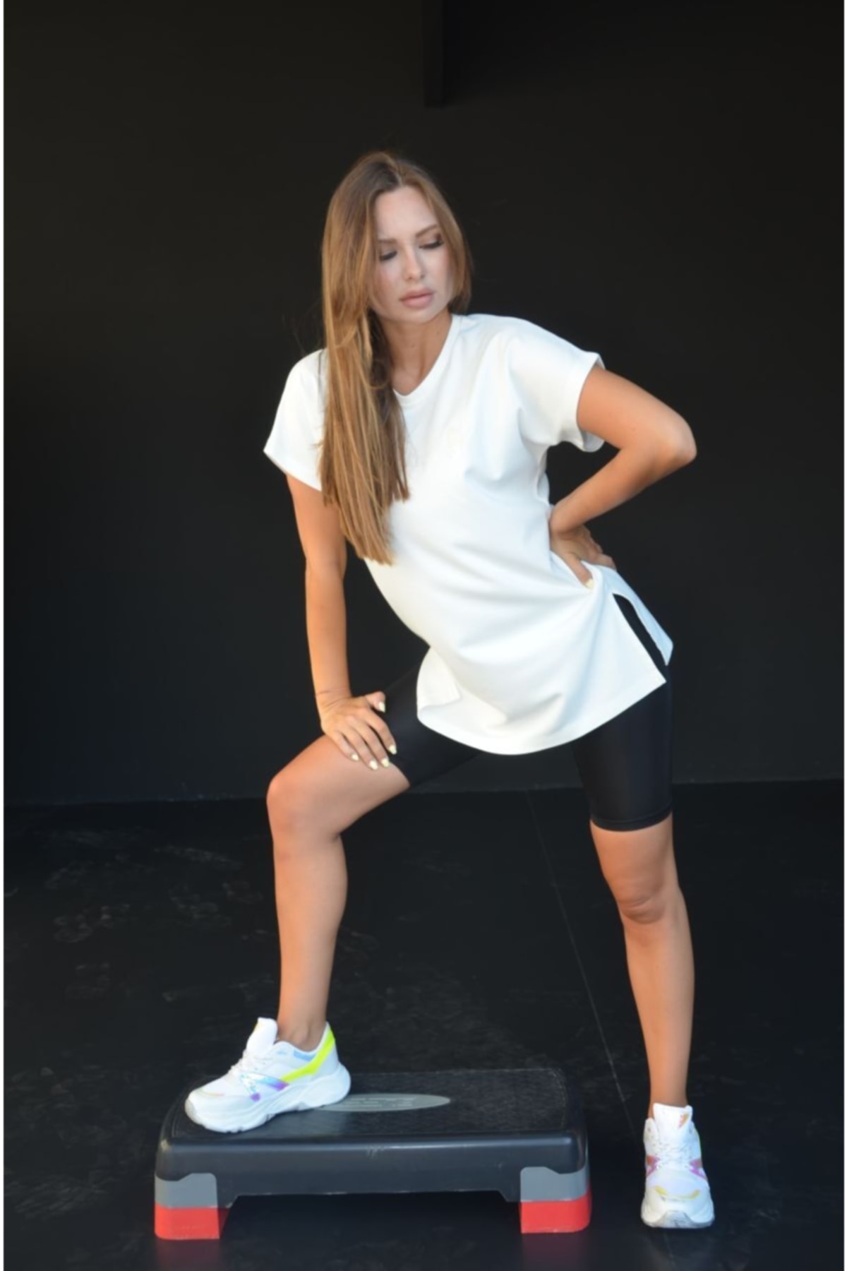 Kadın Yakası Ve Kollarında Sim Detaylı V Yaka Beyaz Kisa Kollu Pamuklu T-shirt Kadın Yakası Ve Kollarında Sim Detaylı V Yaka Beyaz Kisa Kollu Pamuklu T-shirt TD222 XL