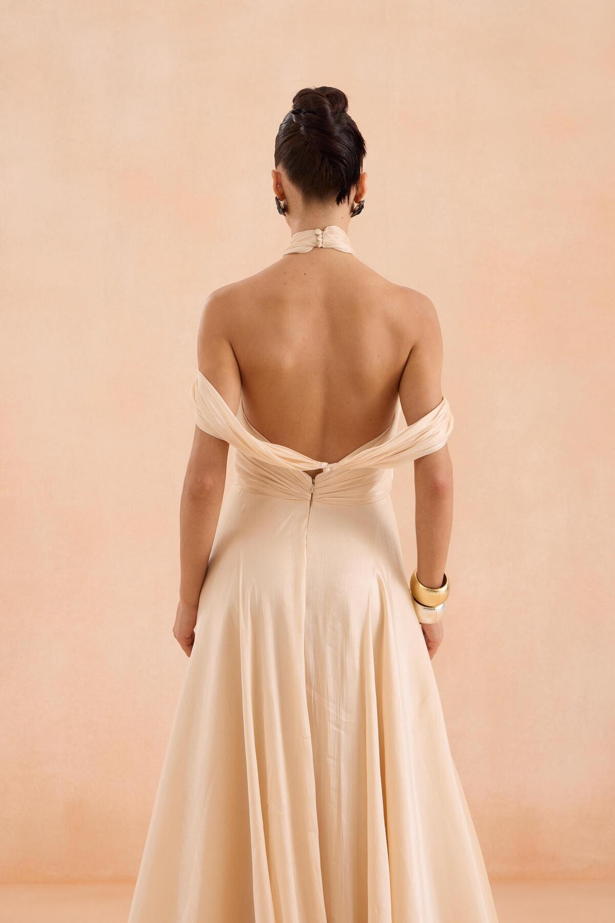 Gold Sırt Dekolteli Yırtmaçlı Şifon Abiye Elbise Gold Sırt Dekolteli Yırtmaçlı Şifon Abiye Elbise 58483 42