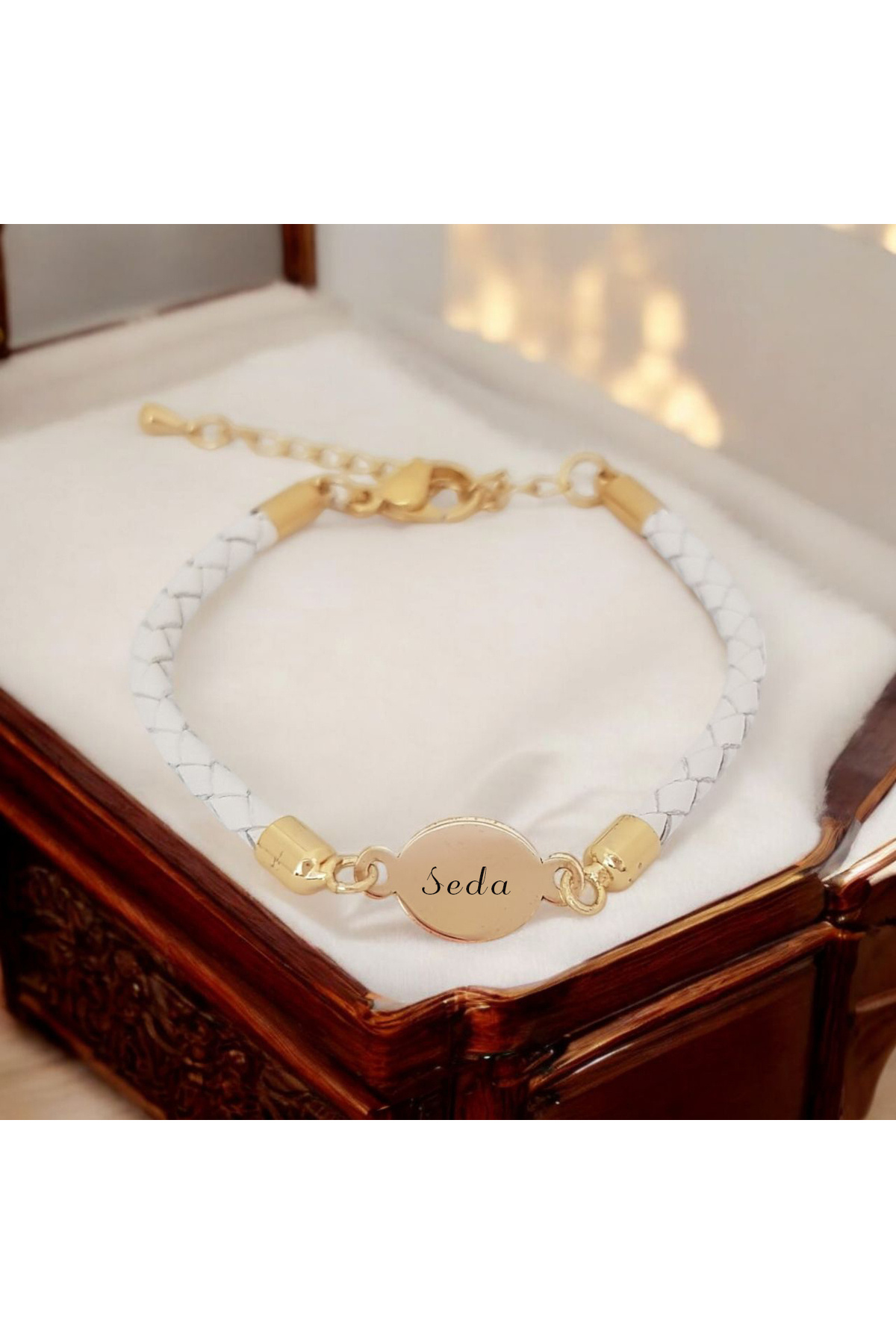 14 Ayar Altın Plakalı Yaren İsmine Özel Doğal Beyaz Derili Oval Motifli Hediye Bileklik-529isim 14 Ayar Altın Plakalı Yaren İsmine Özel Doğal Beyaz Derili Oval Motifli Hediye Bileklik-529isim 529-dachbebafbey-bbcb-MO1 22 cm