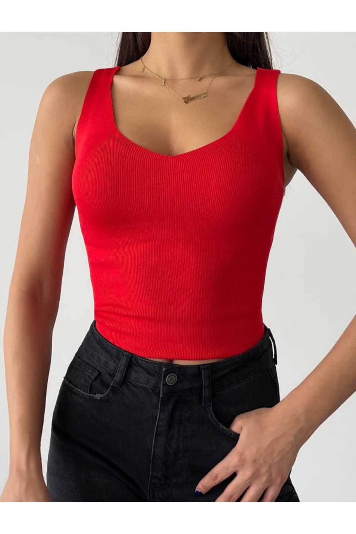 Kadın Mevsimlik Kolsuz Kare Yaka Triko T-Shirt Kadın Mevsimlik Kolsuz Kare Yaka Triko T-Shirt MRVN-0044 S/M