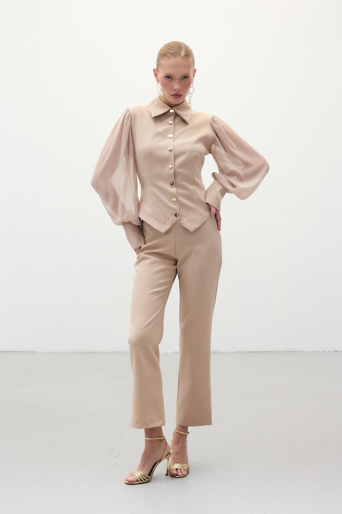 Şifon Kol Gömlek - Bej Şifon Kol Gömlek - Bej STN139KGO1545 42
