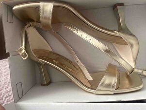 Kadın Altın Metalic Tek Bantlı Arkası Açık Bilekten Bağlı Topuklu Ayakkabı Kadın Altın Metalic Tek Bantlı Arkası Açık Bilekten Bağlı Topuklu Ayakkabı TB-001 39