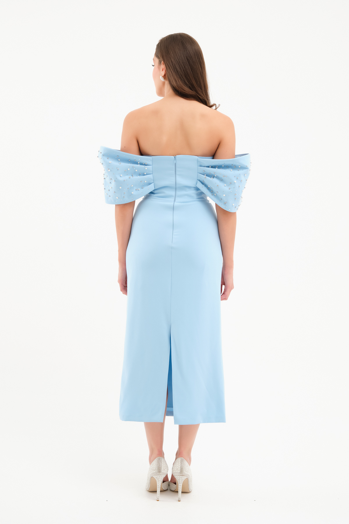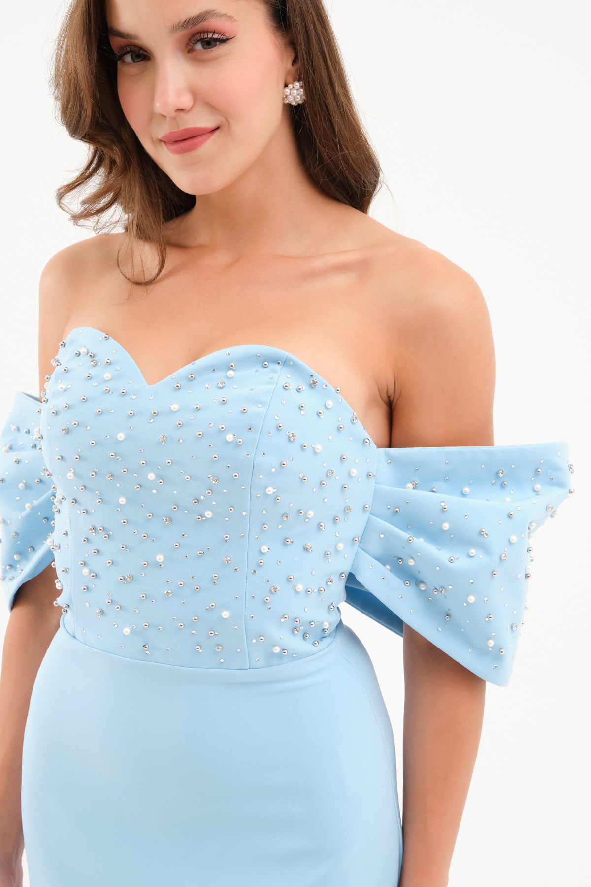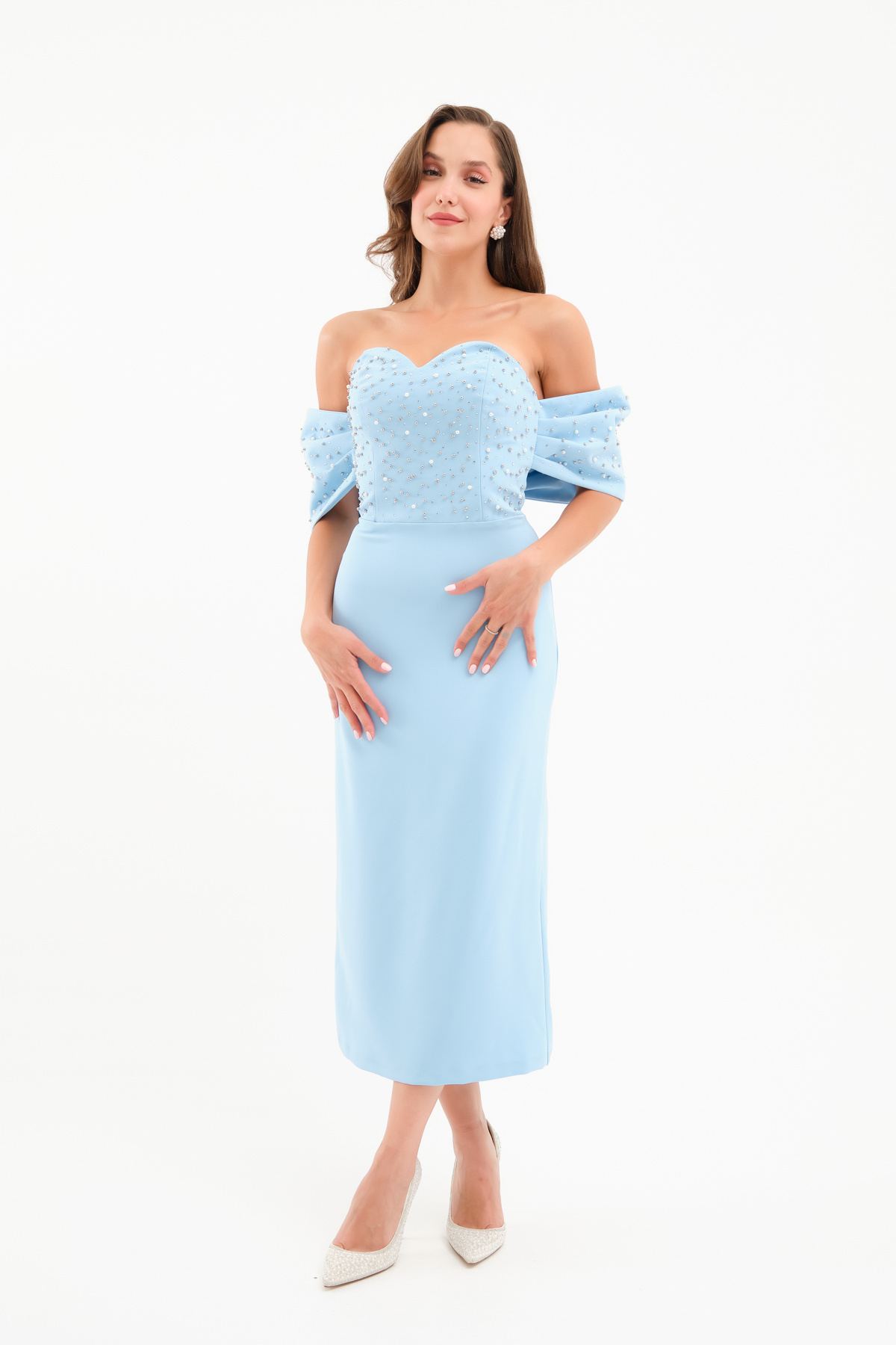 Kadın Bebe Mavi Straplez Yaka Kol Detay Midi Abiye Elbise Kadın Bebe Mavi Straplez Yaka Kol Detay Midi Abiye Elbise 25Y741823 42