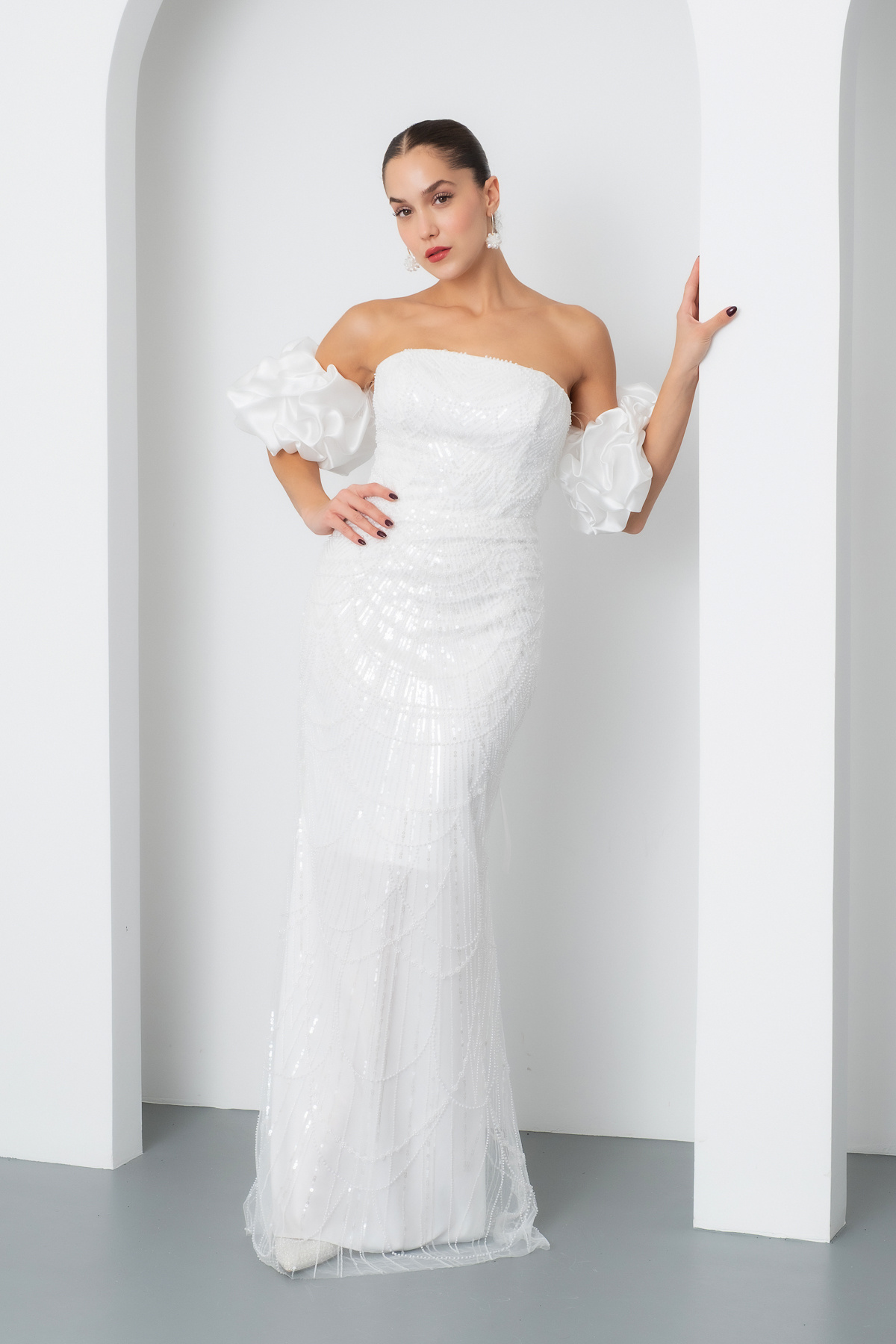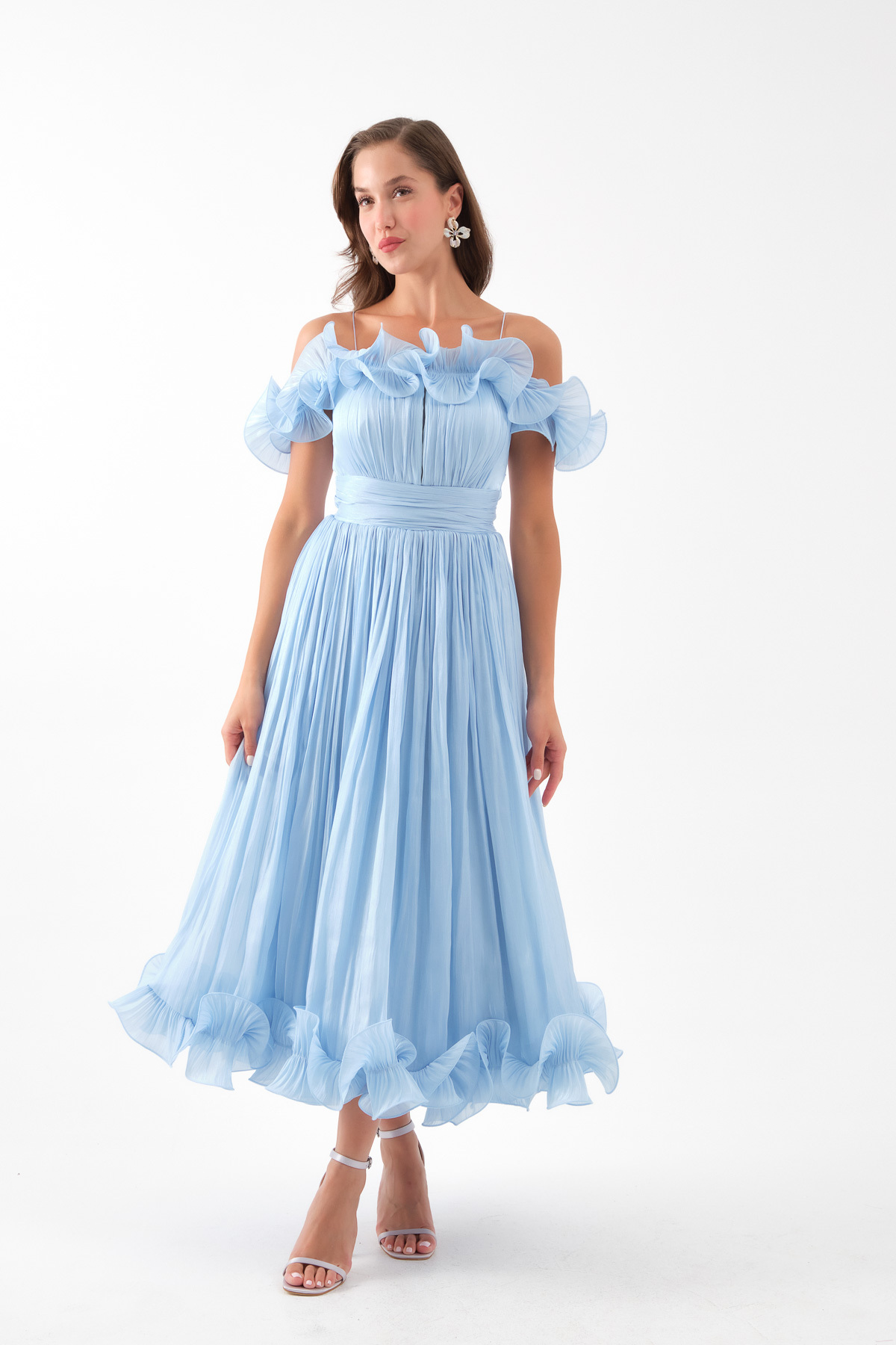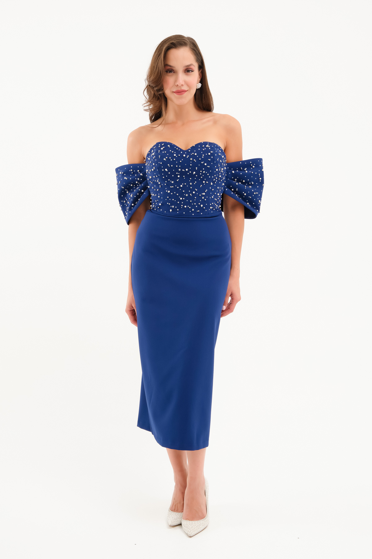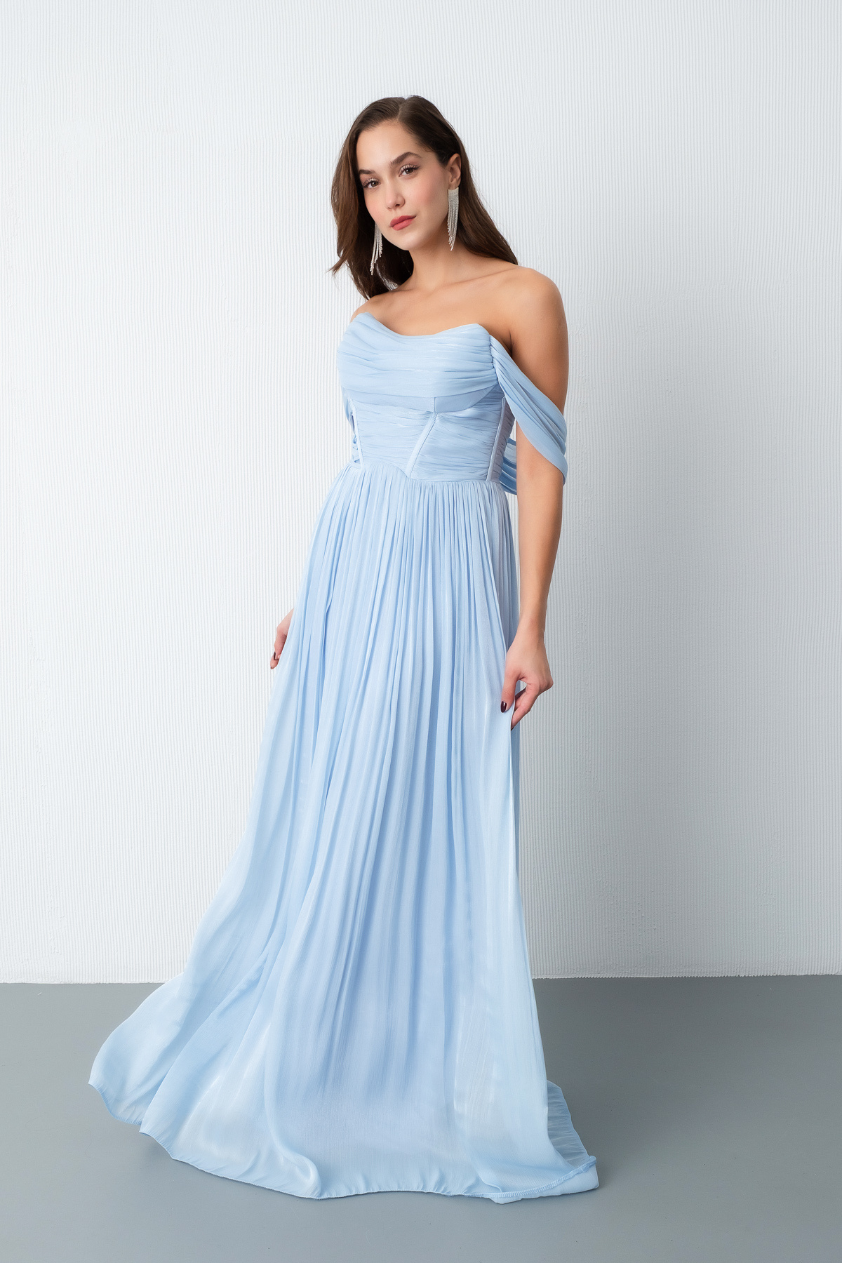 Kadın Bebe Mavi Straplez Yaka Kol Detay Midi Abiye Elbise Kadın Bebe Mavi Straplez Yaka Kol Detay Midi Abiye Elbise 25Y741823 42