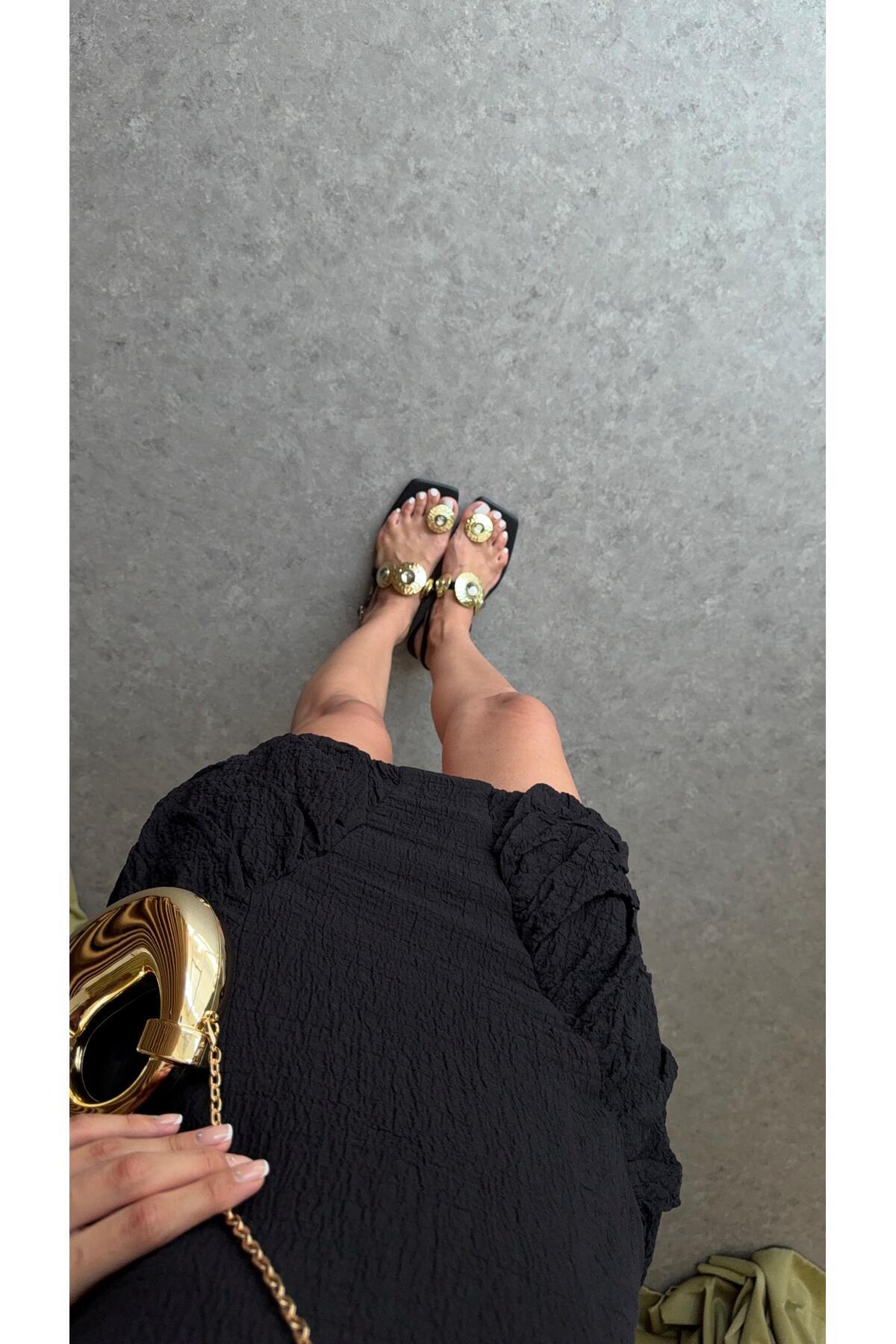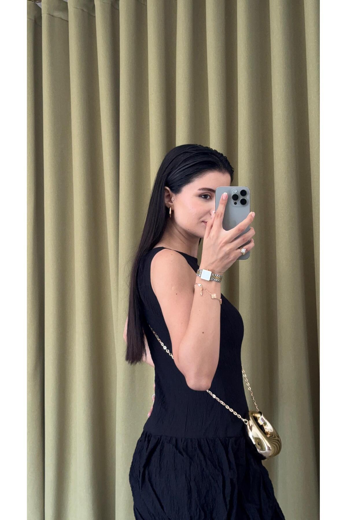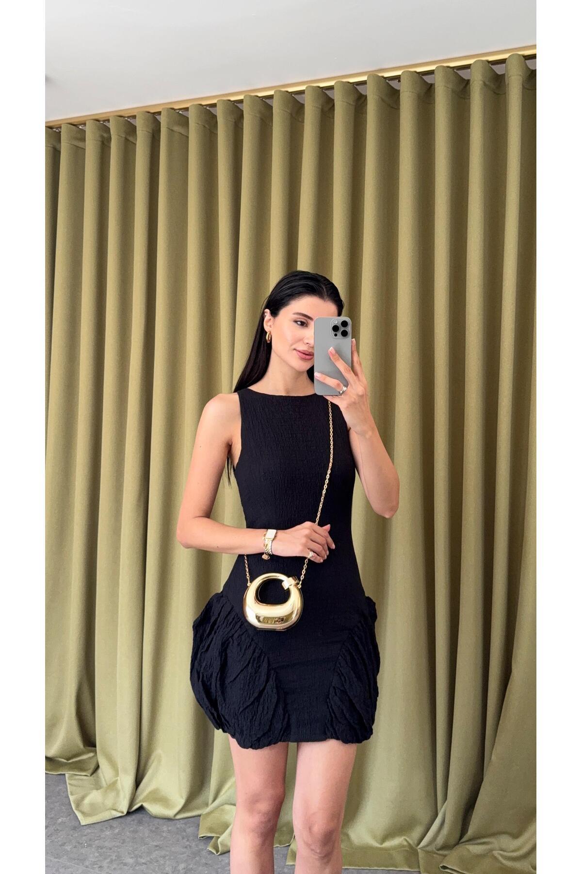 Siyah Balon Elbise Siyah Balon Elbise 11654 XL
