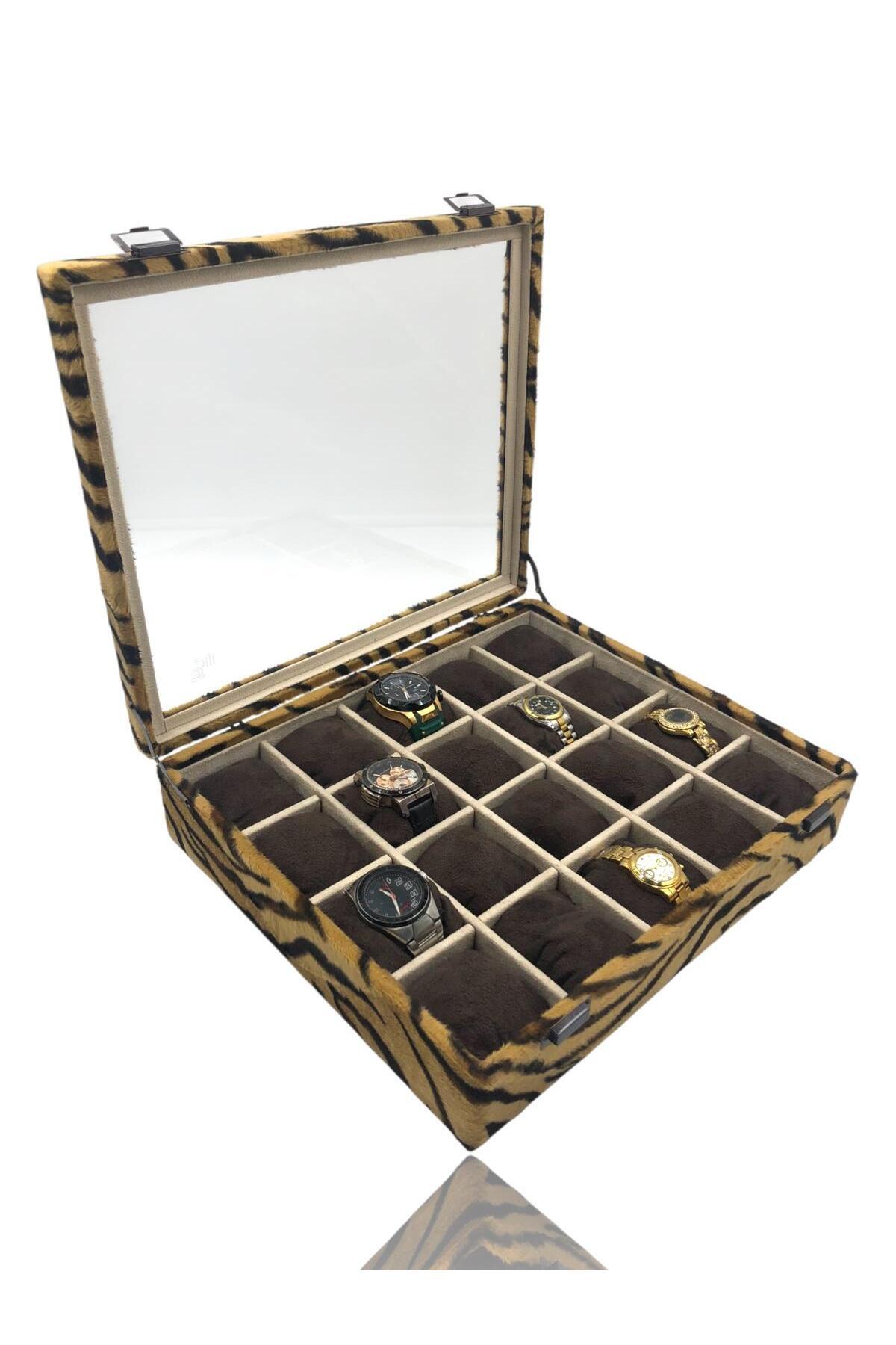Diji 20'li Saat Kutusu Saat Çantası TİGER İçi Krem Kahve Yastıklı Diji 20'li Saat Kutusu Saat Çantası TİGER İçi Krem Kahve Yastıklı DİJİ028 تک سایز