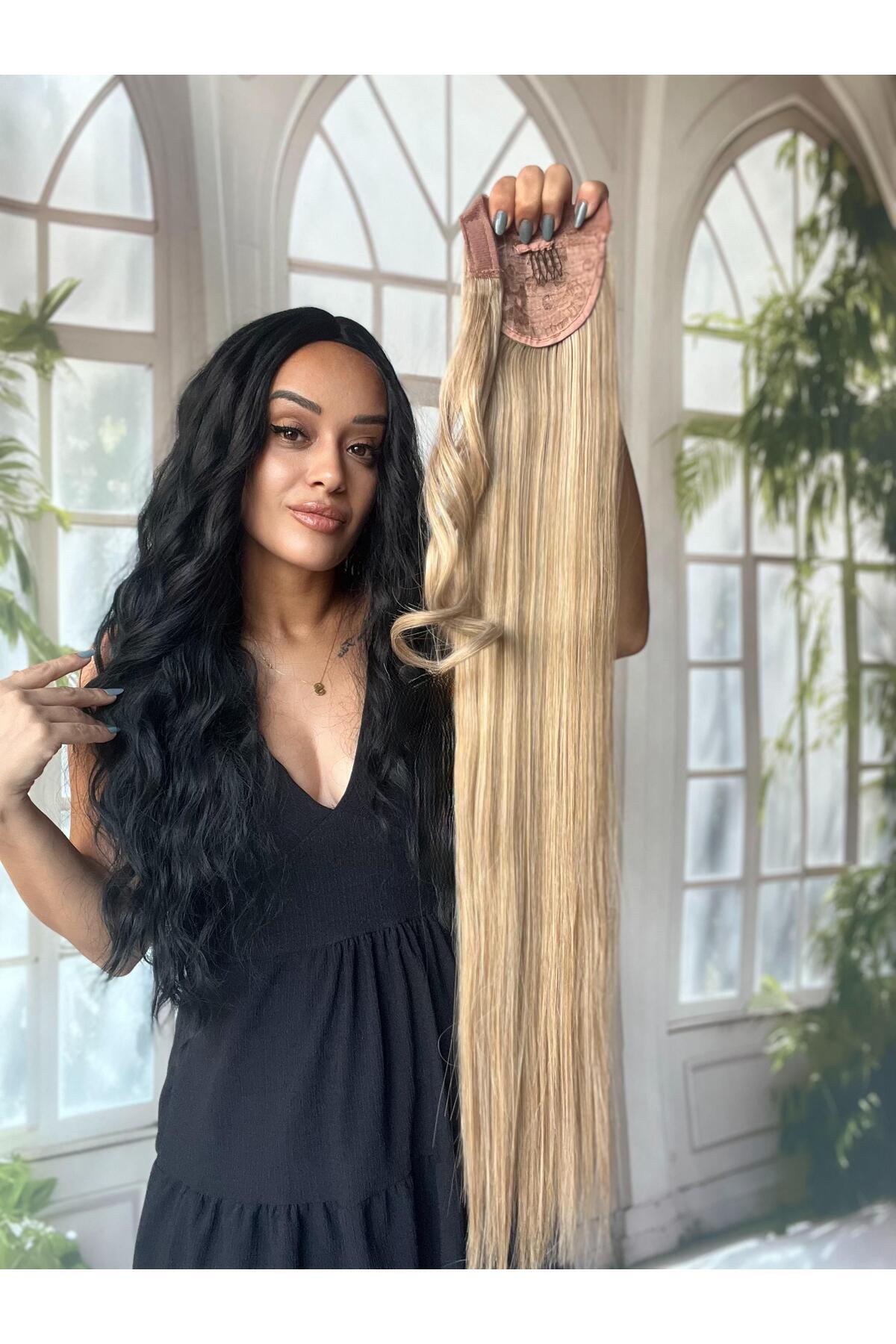 Röfleli Sarı kumral Düz At Kuyruğu Gerçek saç dokusunda-Bağlamalı Postiş 70 Cm Bağcıklı Cırtcırtlı Röfleli Sarı kumral Düz At Kuyruğu Gerçek saç dokusunda-Bağlamalı Postiş 70 Cm Bağcıklı Cırtcırtlı mm130 تک سایز