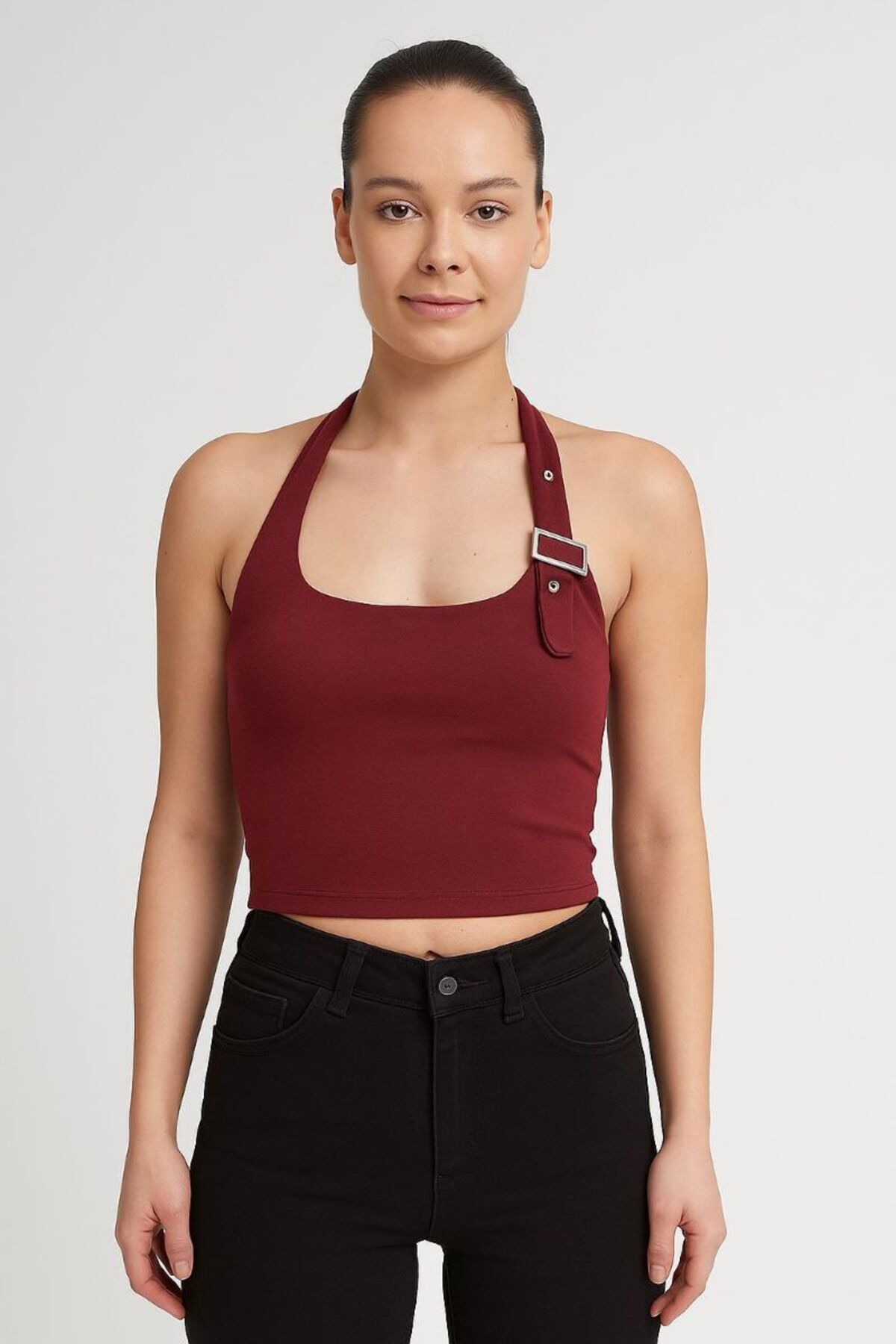 Boyundan Bağlamalı Kemer Detaylı Vücuda Oturan Örme Bluz Boyundan Bağlamalı Kemer Detaylı Vücuda Oturan Örme Bluz PYT20000110 XL