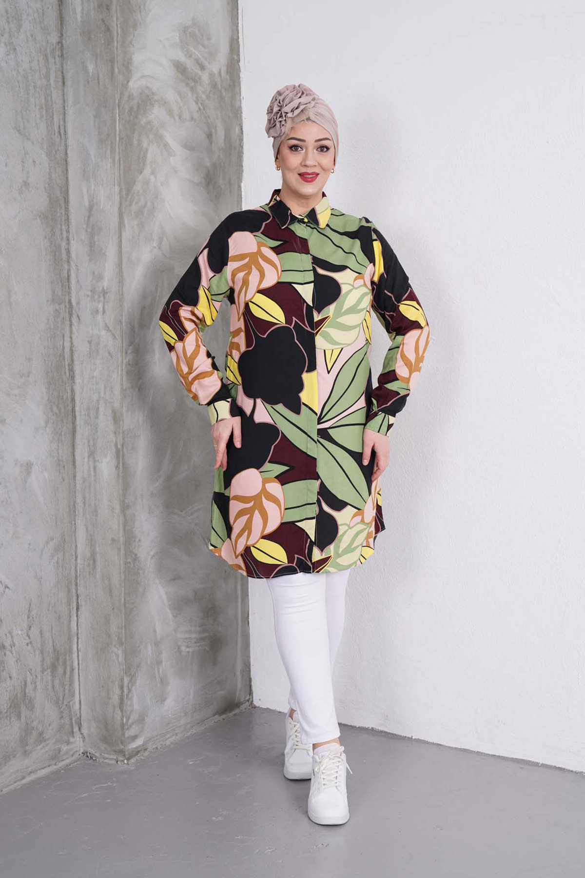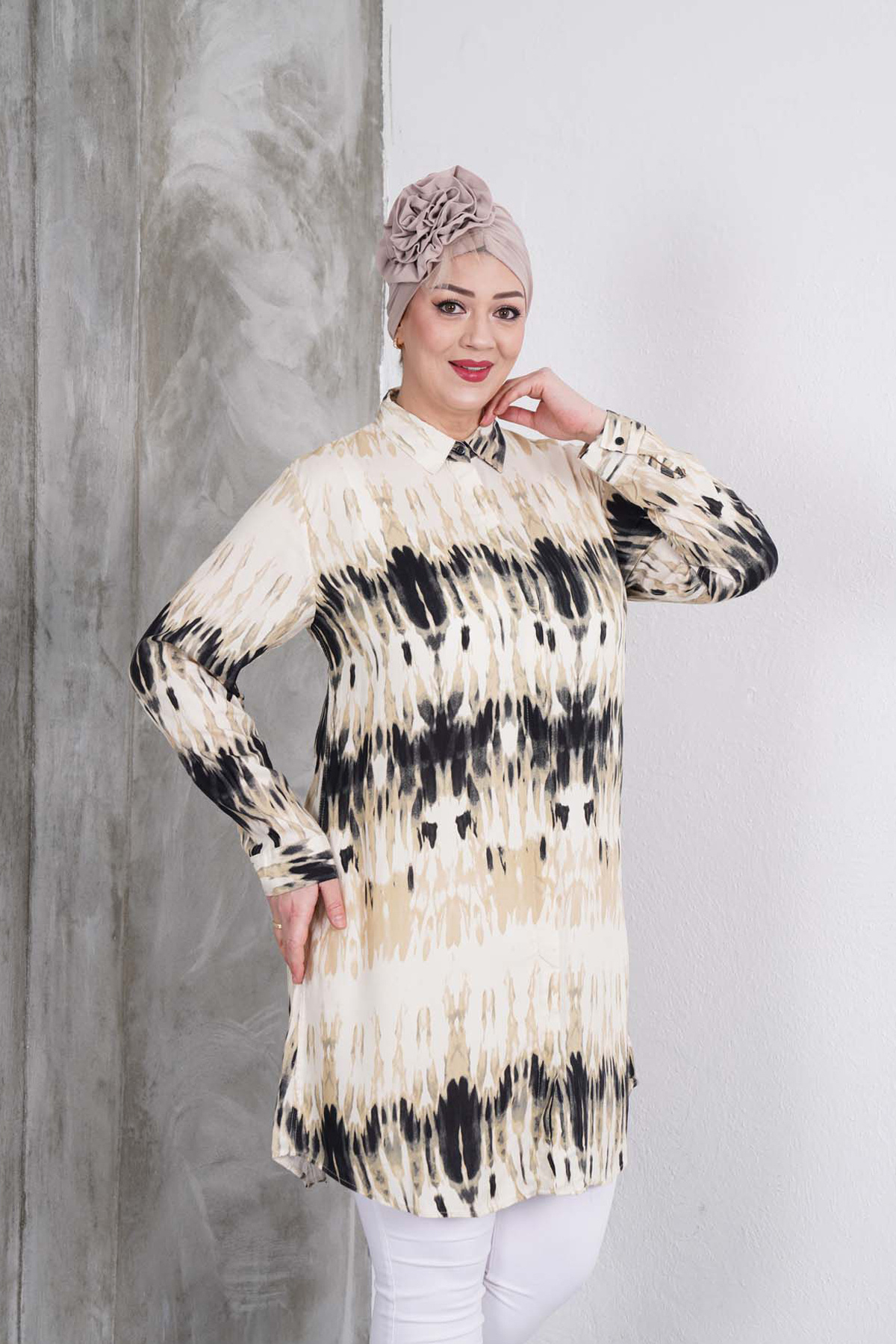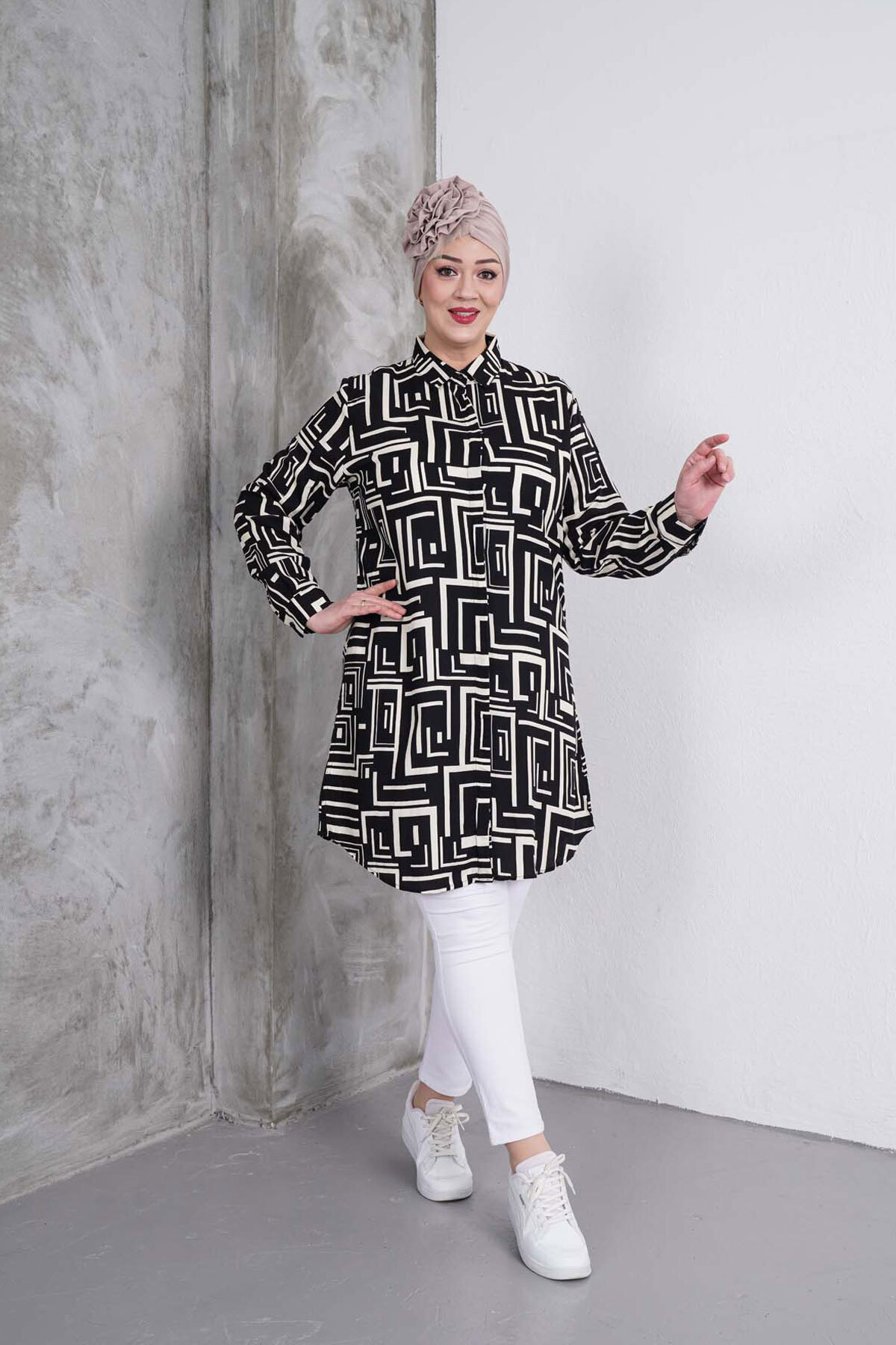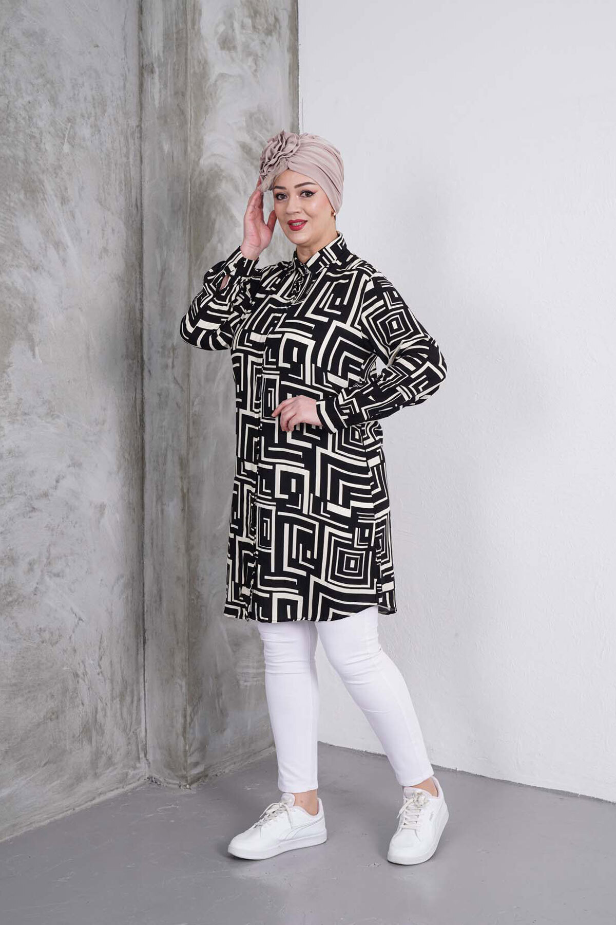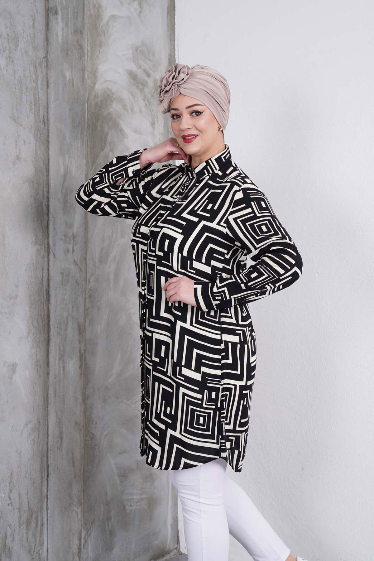Siyah Beyaz Labirent Desen Gömlek Tunik Siyah Beyaz Labirent Desen Gömlek Tunik MCHRAW3 4XL