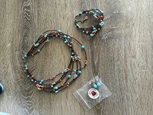Otantik sıkma turkuaz taşlı nazar boncuklu el yapımı kolye bileklik Otantik sıkma turkuaz taşlı nazar boncuklu el yapımı kolye bileklik 21174 S