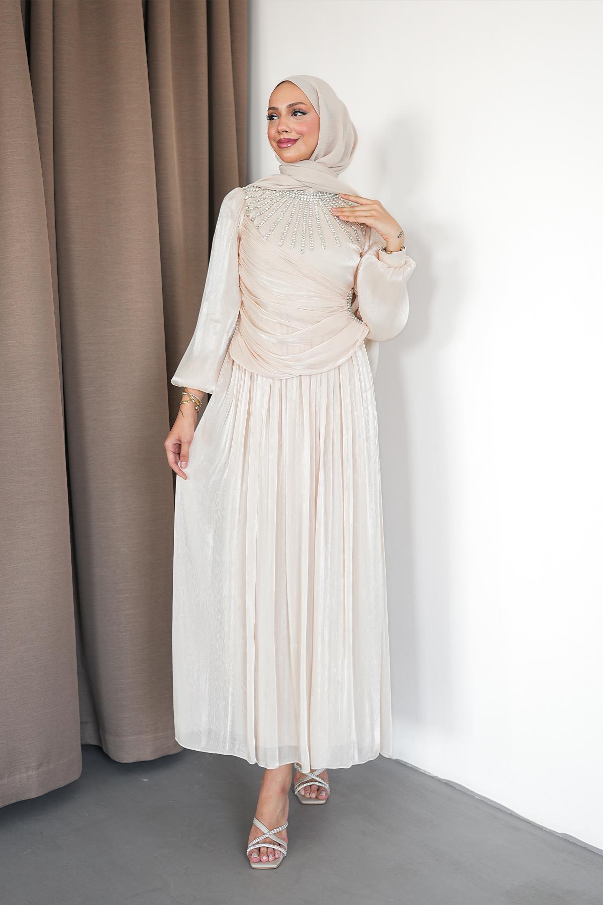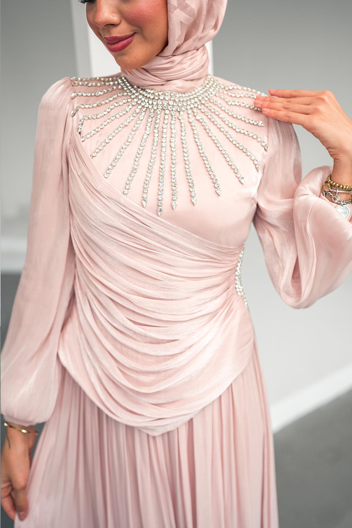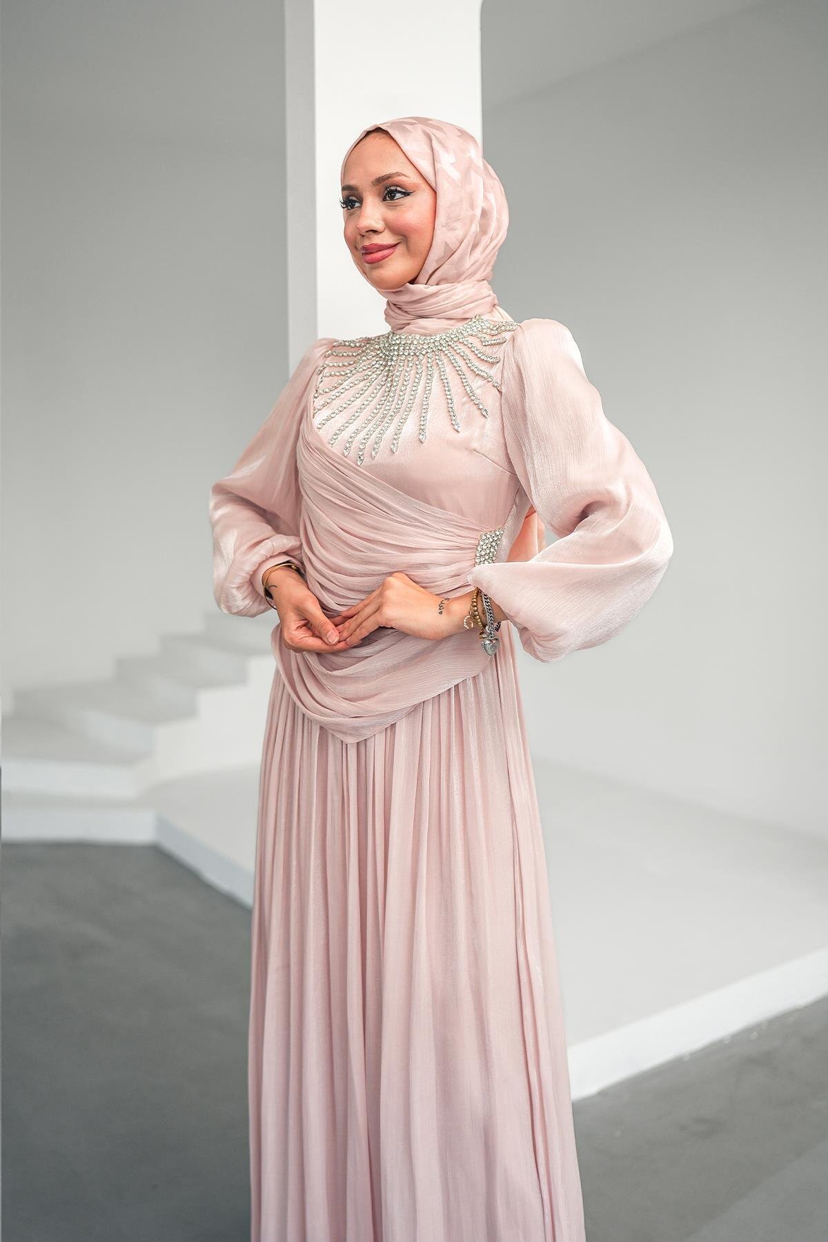 Tesettür Şimal Işıltı Abiye Pudra Tesettür Şimal Işıltı Abiye Pudra LP6238 48