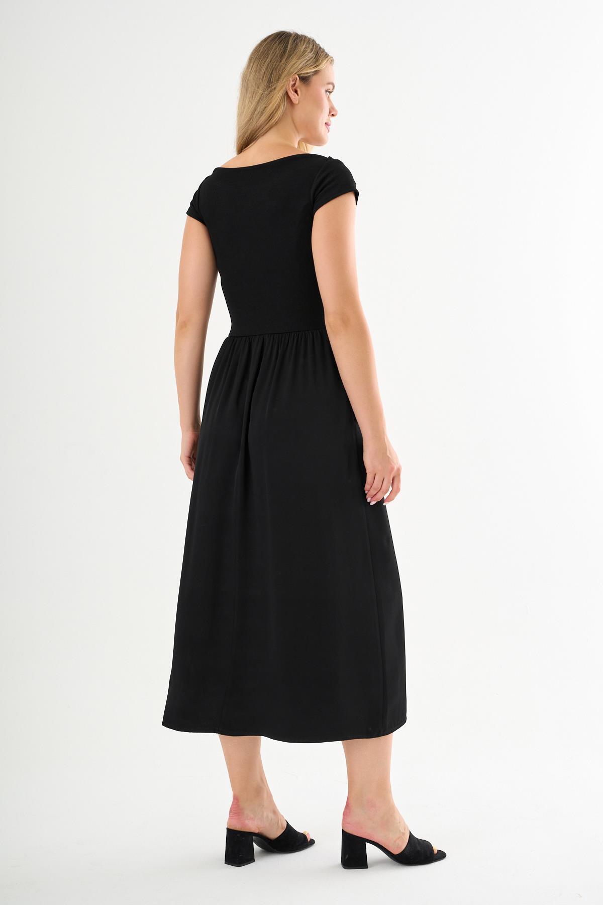 Kısa Kollu Midi Boy Siyah Elbise Kısa Kollu Midi Boy Siyah Elbise B25-00304 2XL