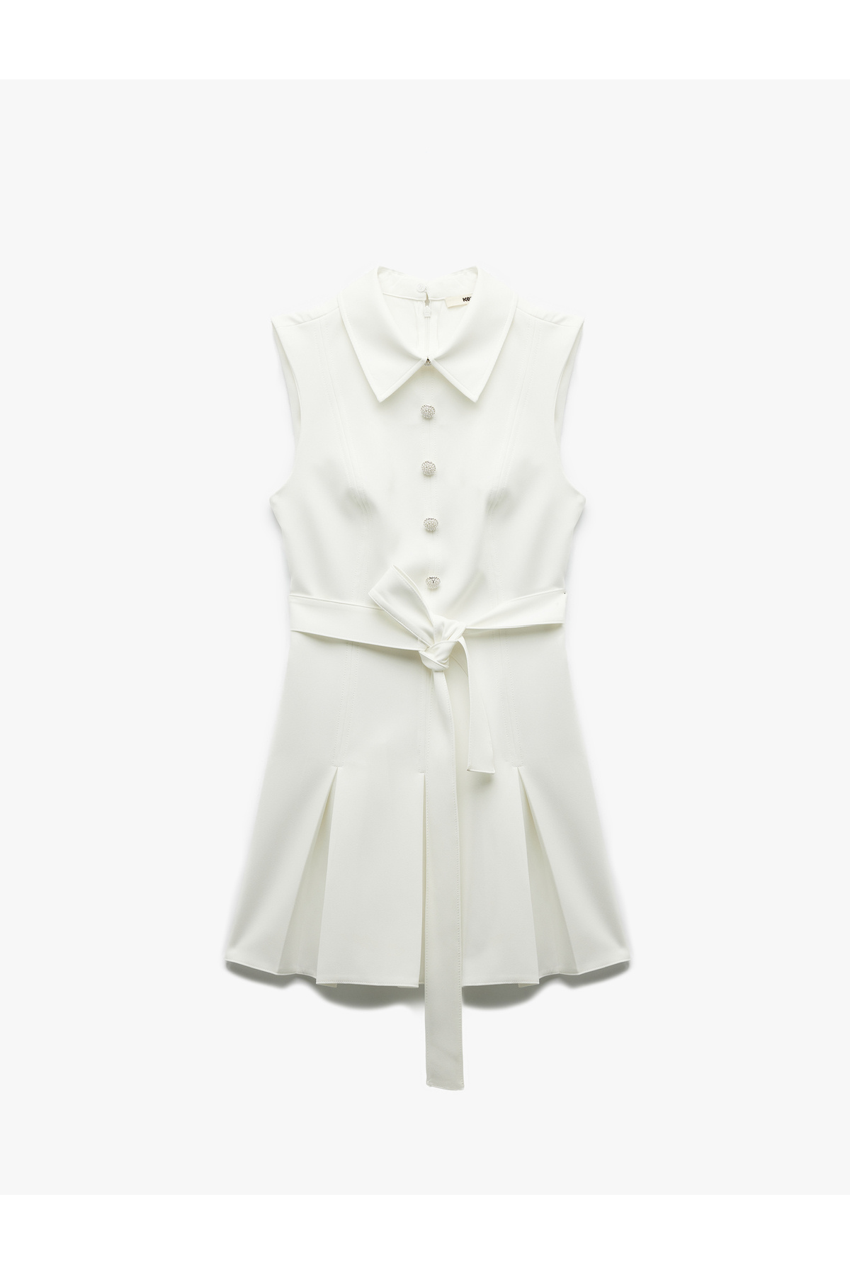 Düğmeli Pileli Kemer Detaylı Mini Gömlek Elbise Düğmeli Pileli Kemer Detaylı Mini Gömlek Elbise 6WAK80021UW 42