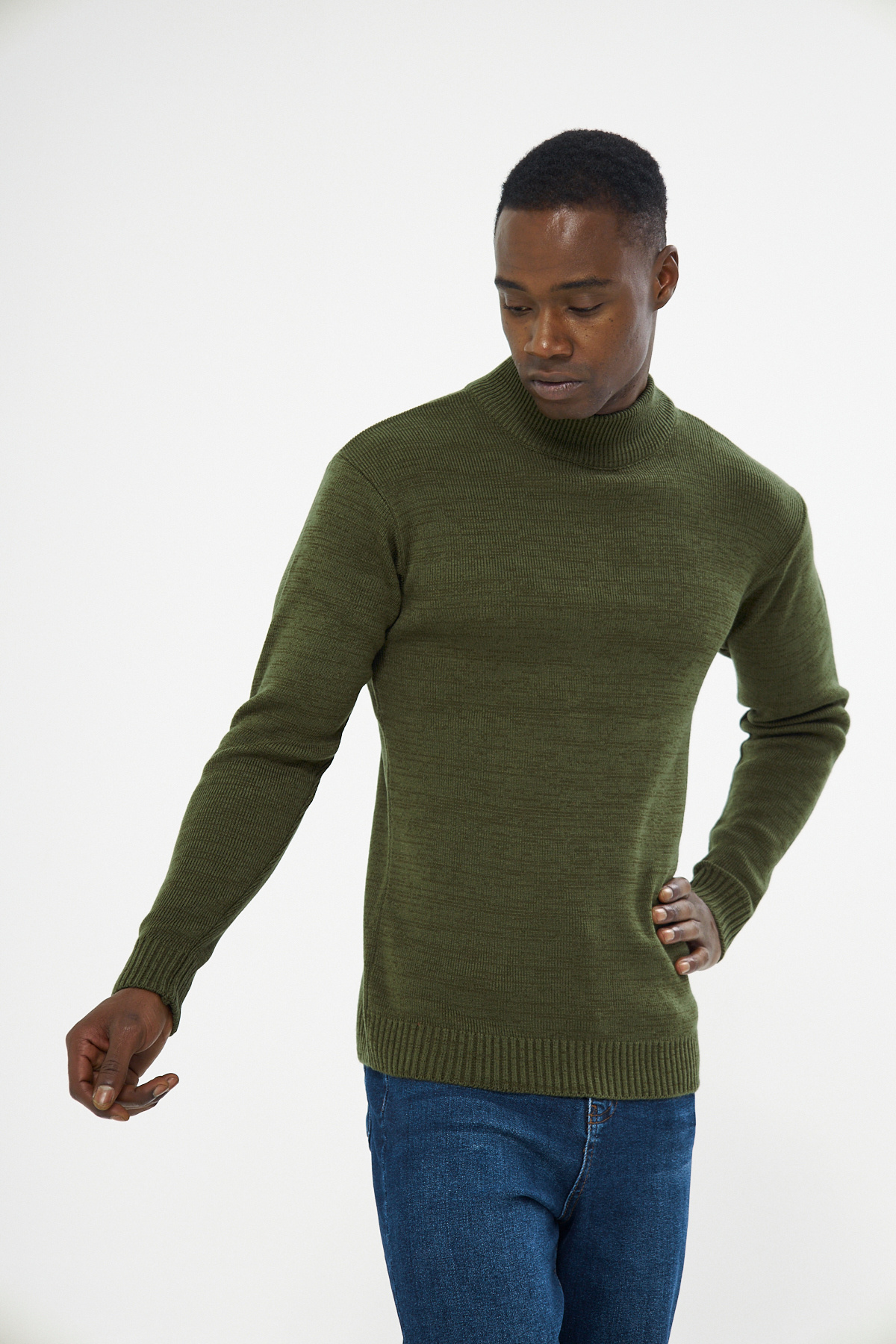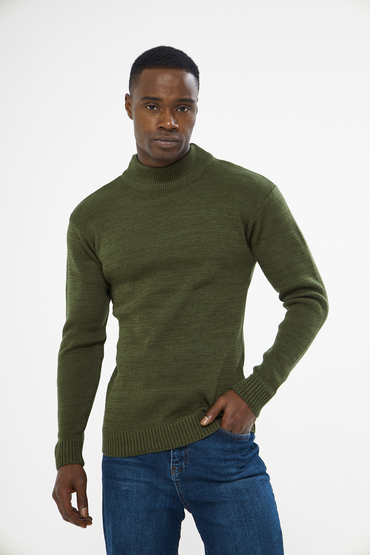 Erkek Haki Düz Örgü Yarım Balıkçı Yaka Triko Kazak Erkek Haki Düz Örgü Yarım Balıkçı Yaka Triko Kazak 2368 XL