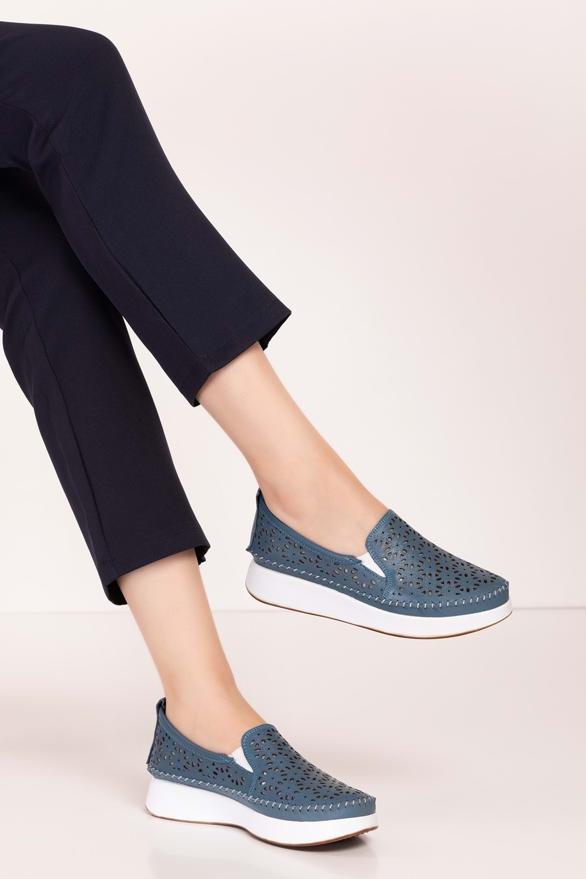 Hakiki Deri Rahat Yazlık Ayakkabı kla.15 Mavi Hakiki Deri Rahat Yazlık Ayakkabı kla.15 Mavi 353522116 40