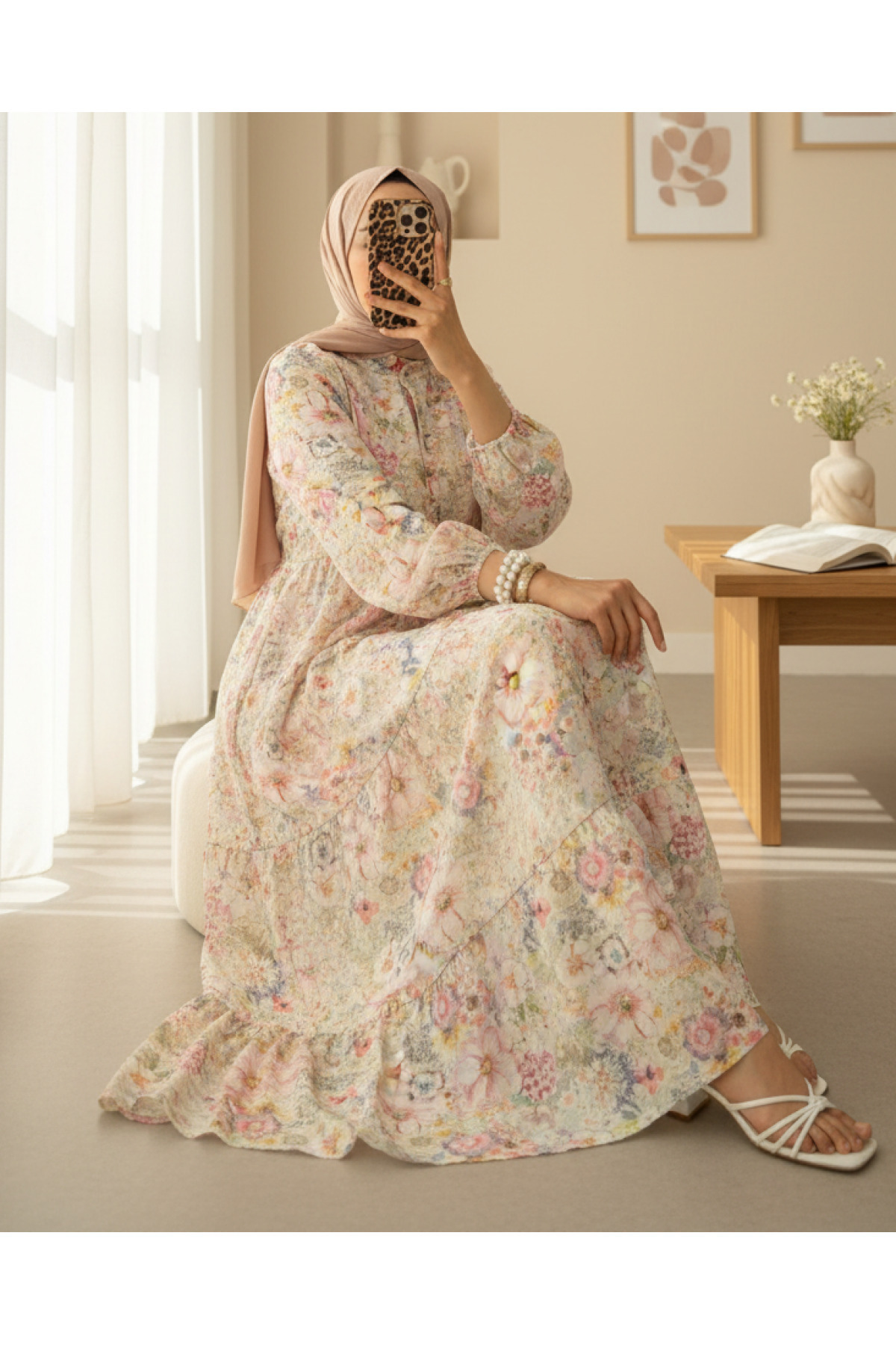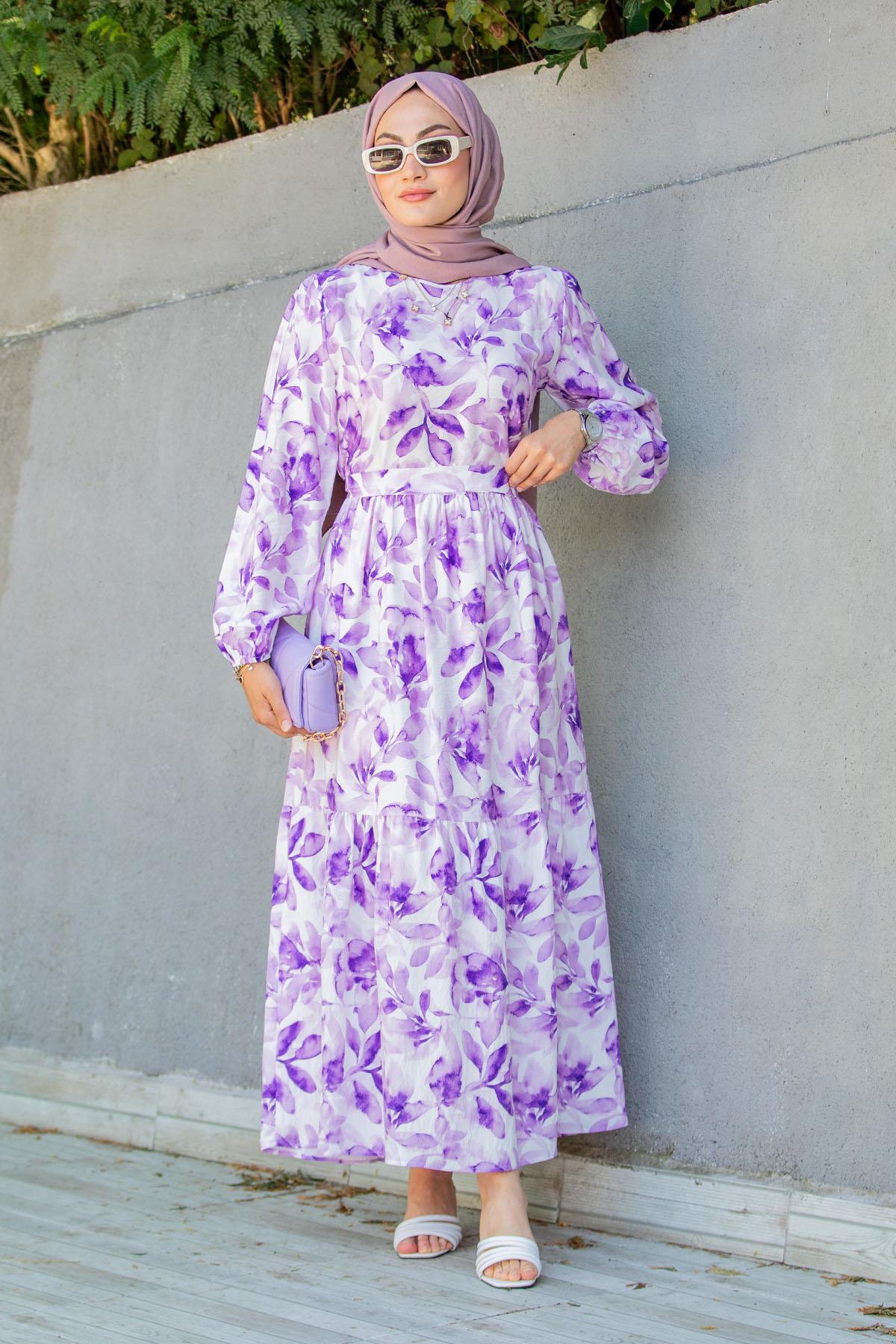 Lidy Çiçekli Desen Yazlık Elbise-Yeşil Lidy Çiçekli Desen Yazlık Elbise-Yeşil Tesettür01257 46