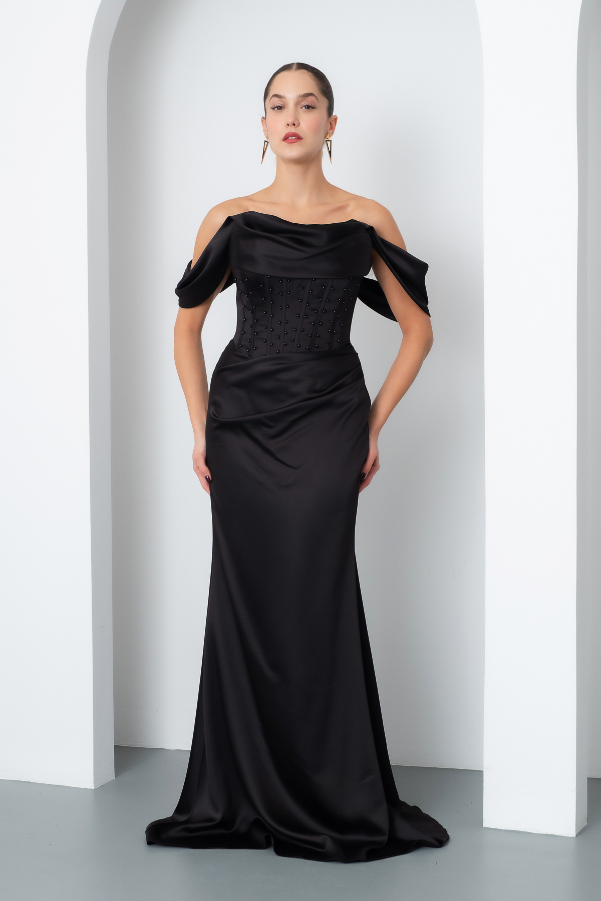 Kadın Lacivert Yaka Çiçekli Uzun Saten Abiye Elbise Kadın Lacivert Yaka Çiçekli Uzun Saten Abiye Elbise 25Y831002 44