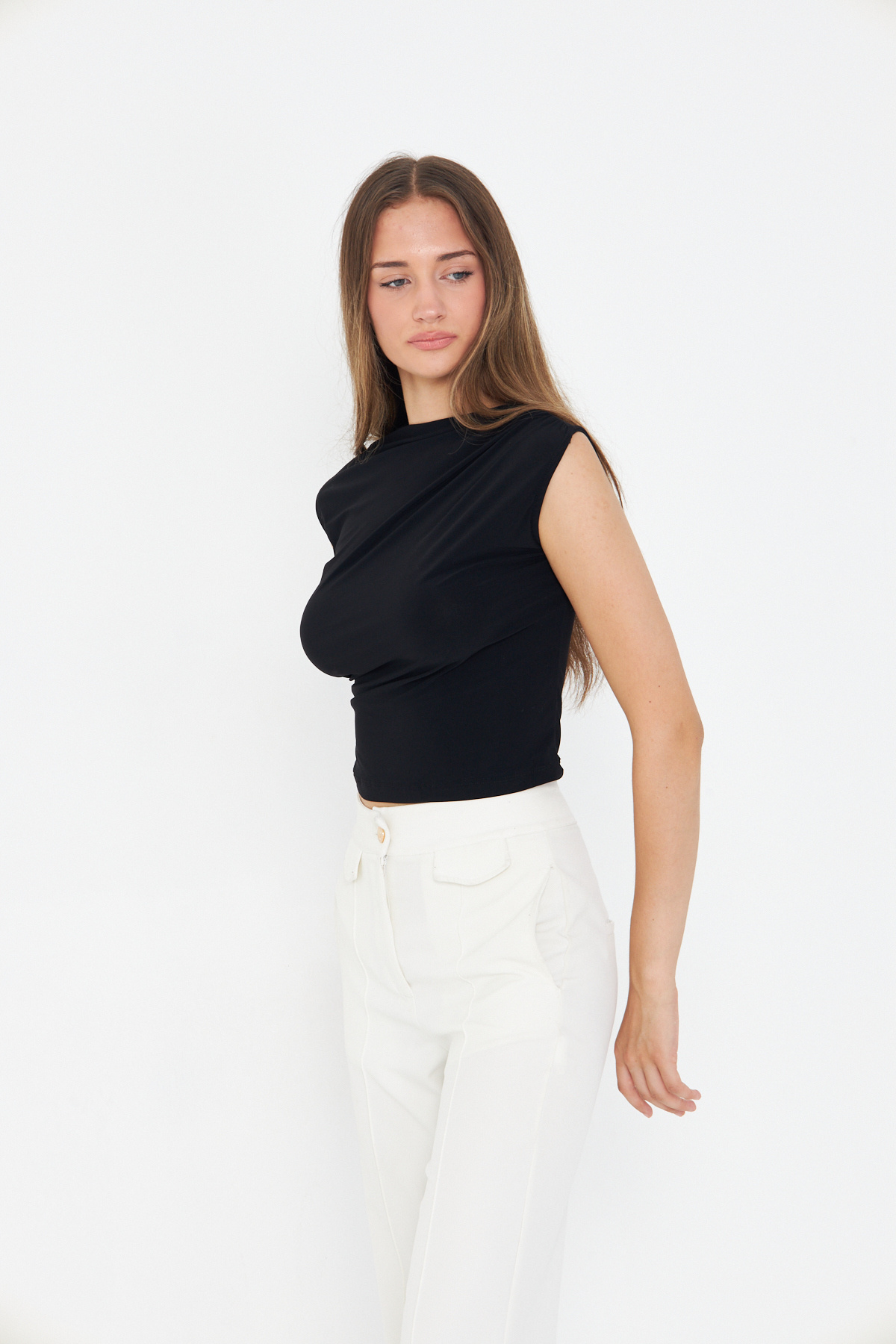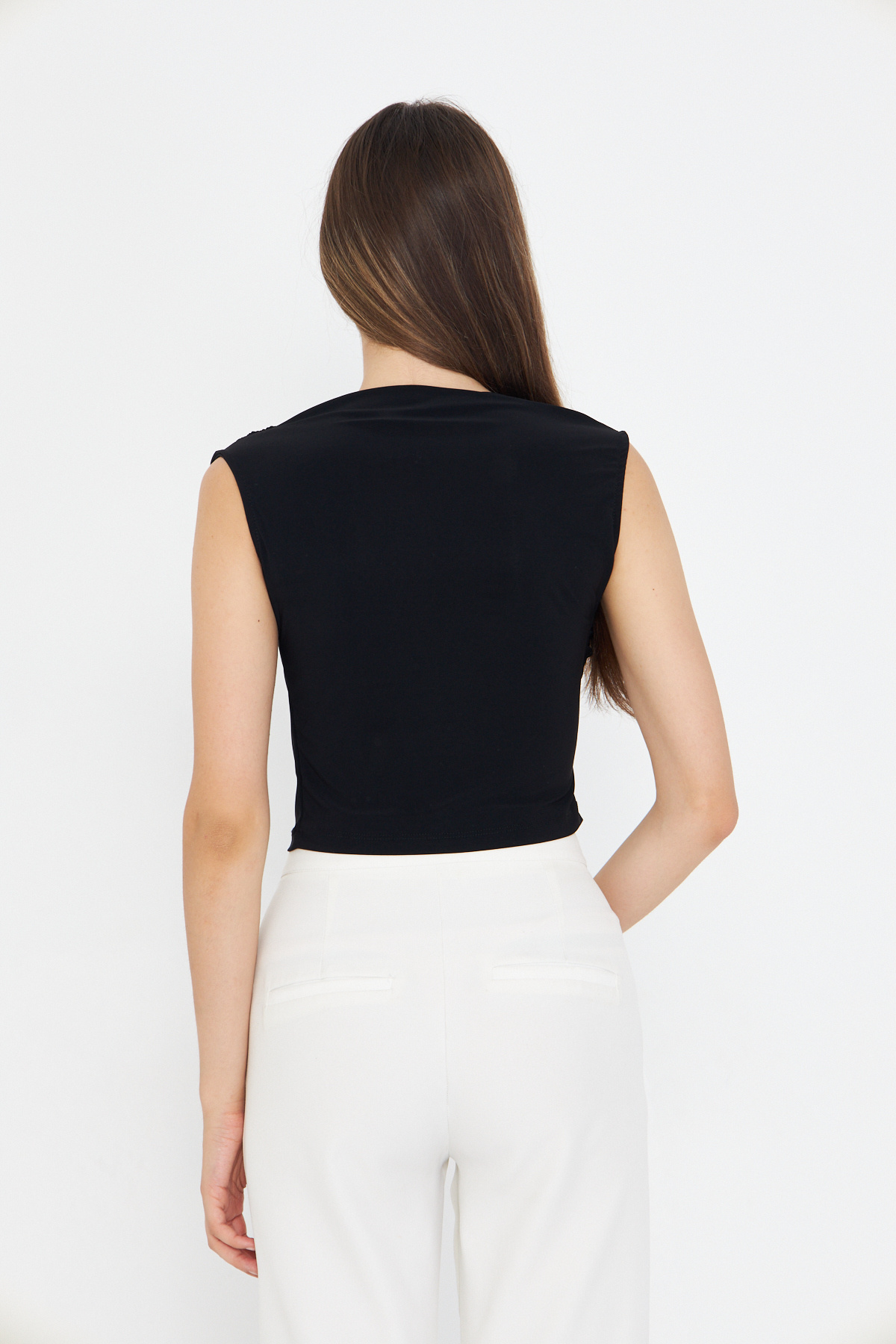 Kadın Sandy Kumaş Çapraz Büzgü Detaylı Kolsuz Bluz Kadın Sandy Kumaş Çapraz Büzgü Detaylı Kolsuz Bluz letssandybluz XL