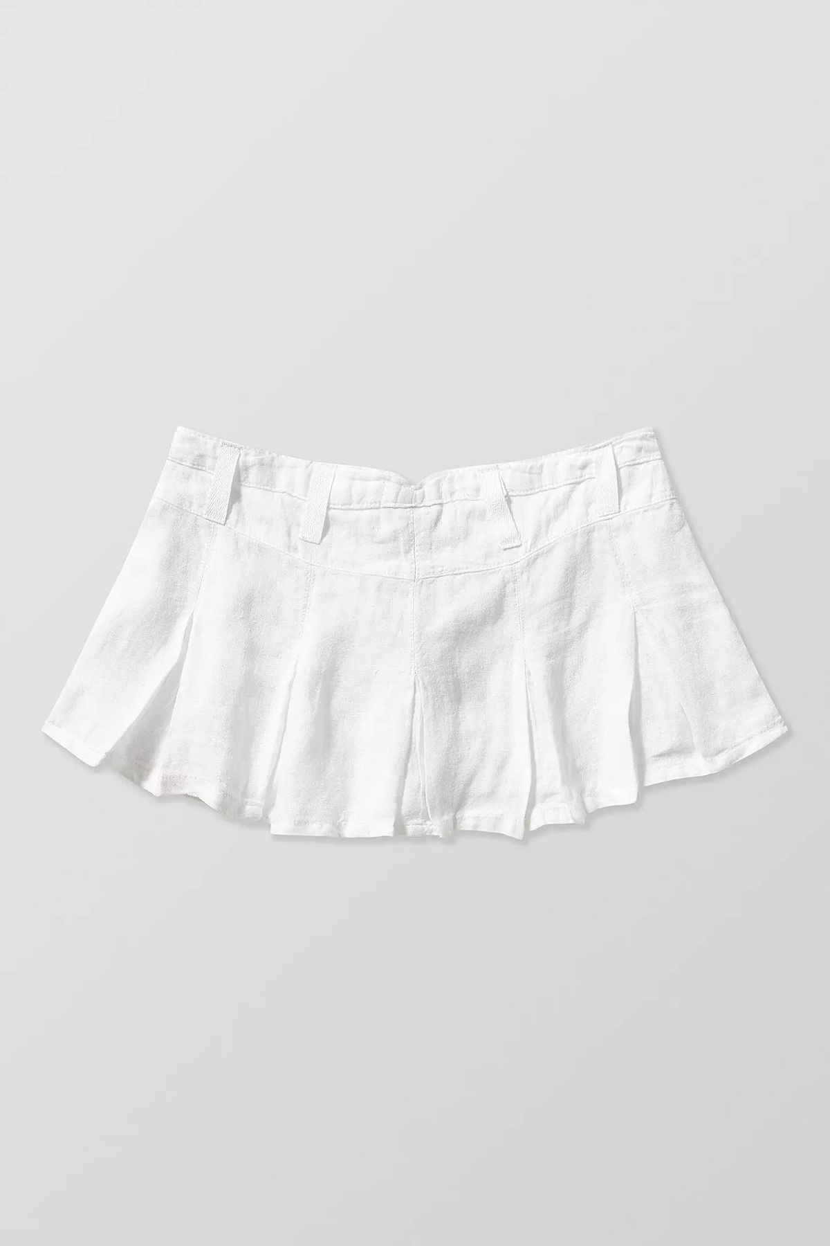 Beyaz Keten Pileli Süper Mini Şort Etek Beyaz Keten Pileli Süper Mini Şort Etek rubylinenpil XL