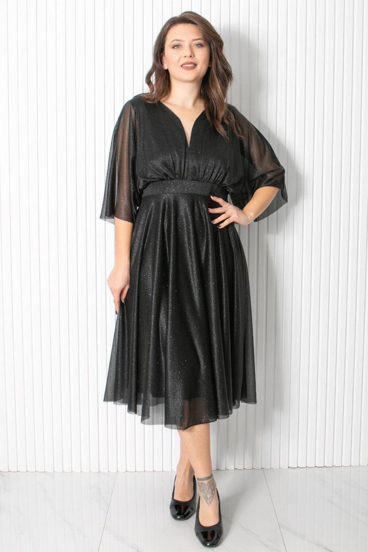 Kadın Lacivert Midi Boy Pulpayet Şifon Tasarım Yarım Kol Büyük Beden Abiye Elbise Kadın Lacivert Midi Boy Pulpayet Şifon Tasarım Yarım Kol Büyük Beden Abiye Elbise ELBISEDELISISTN-2 5XL