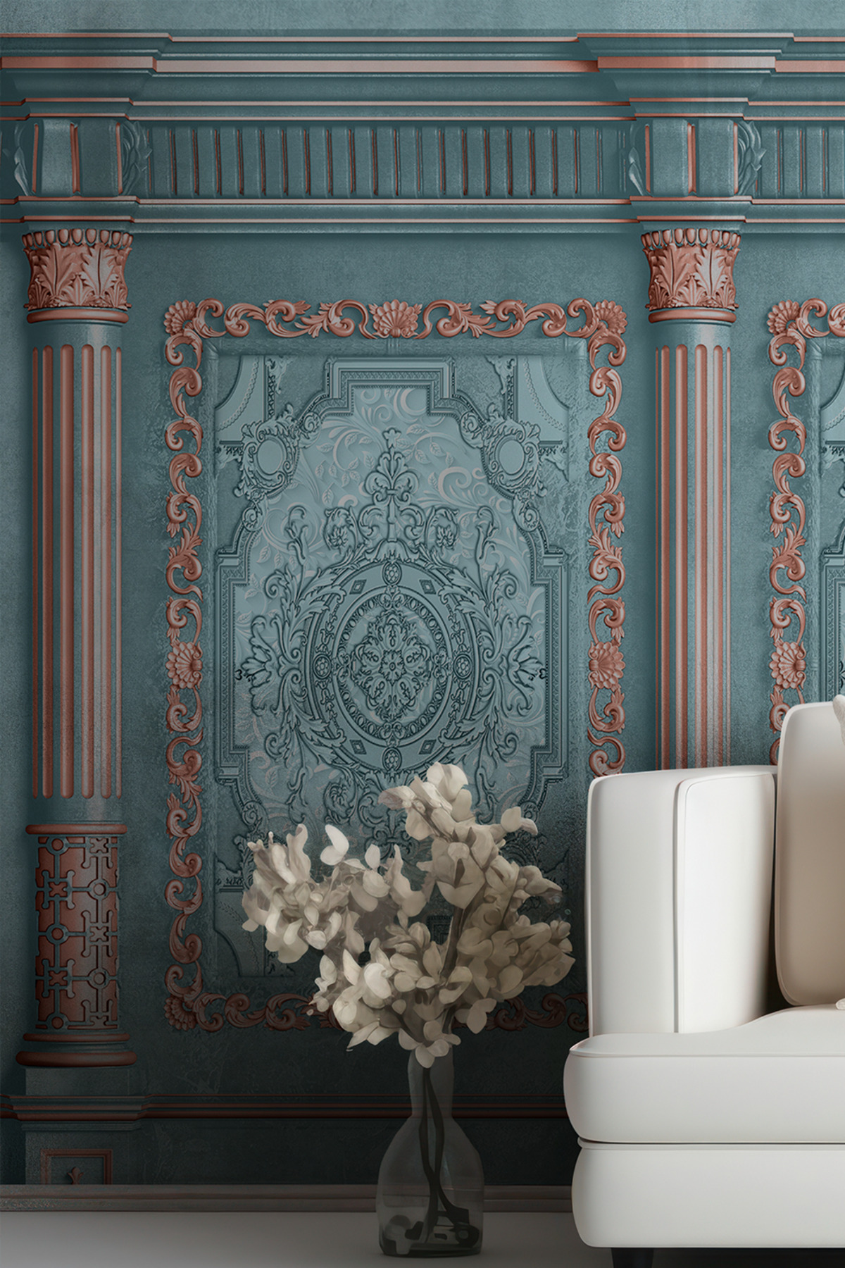 Vintage Mavi ve Bronz Çerçeve Sütun Desenli Duvar Kağıdı Vintage Mavi ve Bronz Çerçeve Sütun Desenli Duvar Kağıdı DW2025-671 450 x 240