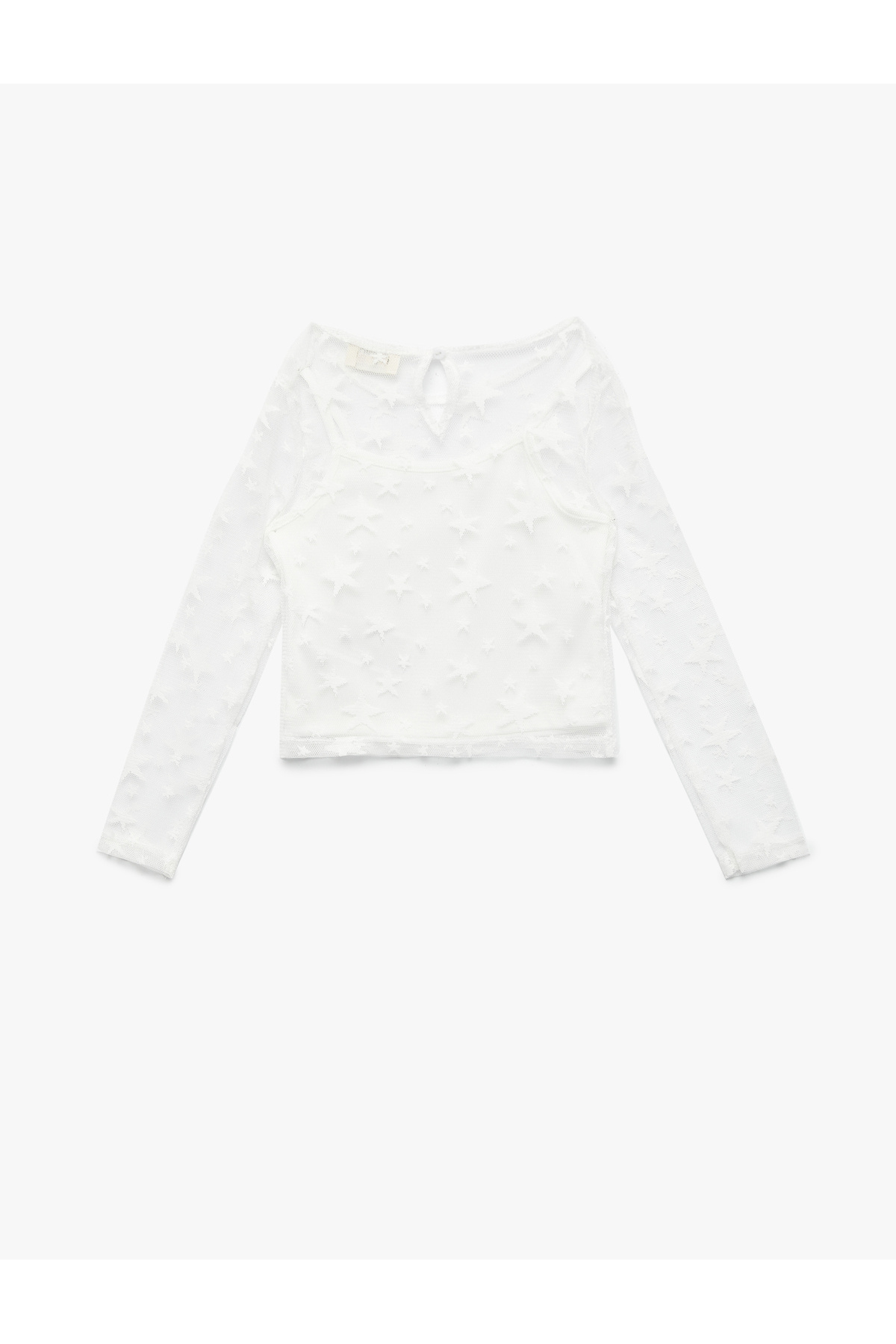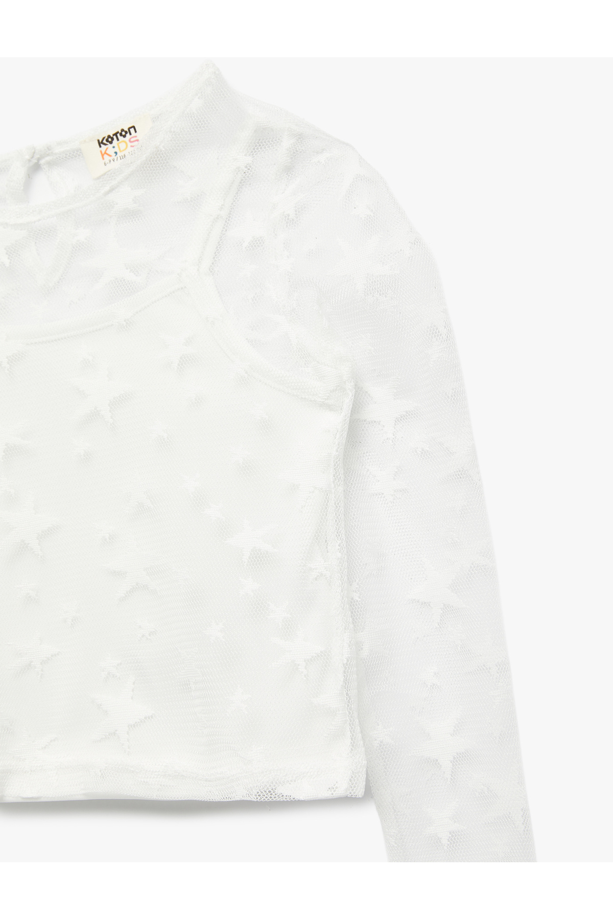 Yıldız Desenli Uzun Kollu Bisiklet Yaka Bluz Yıldız Desenli Uzun Kollu Bisiklet Yaka Bluz 6WKG60013AK 13-14 Yaş