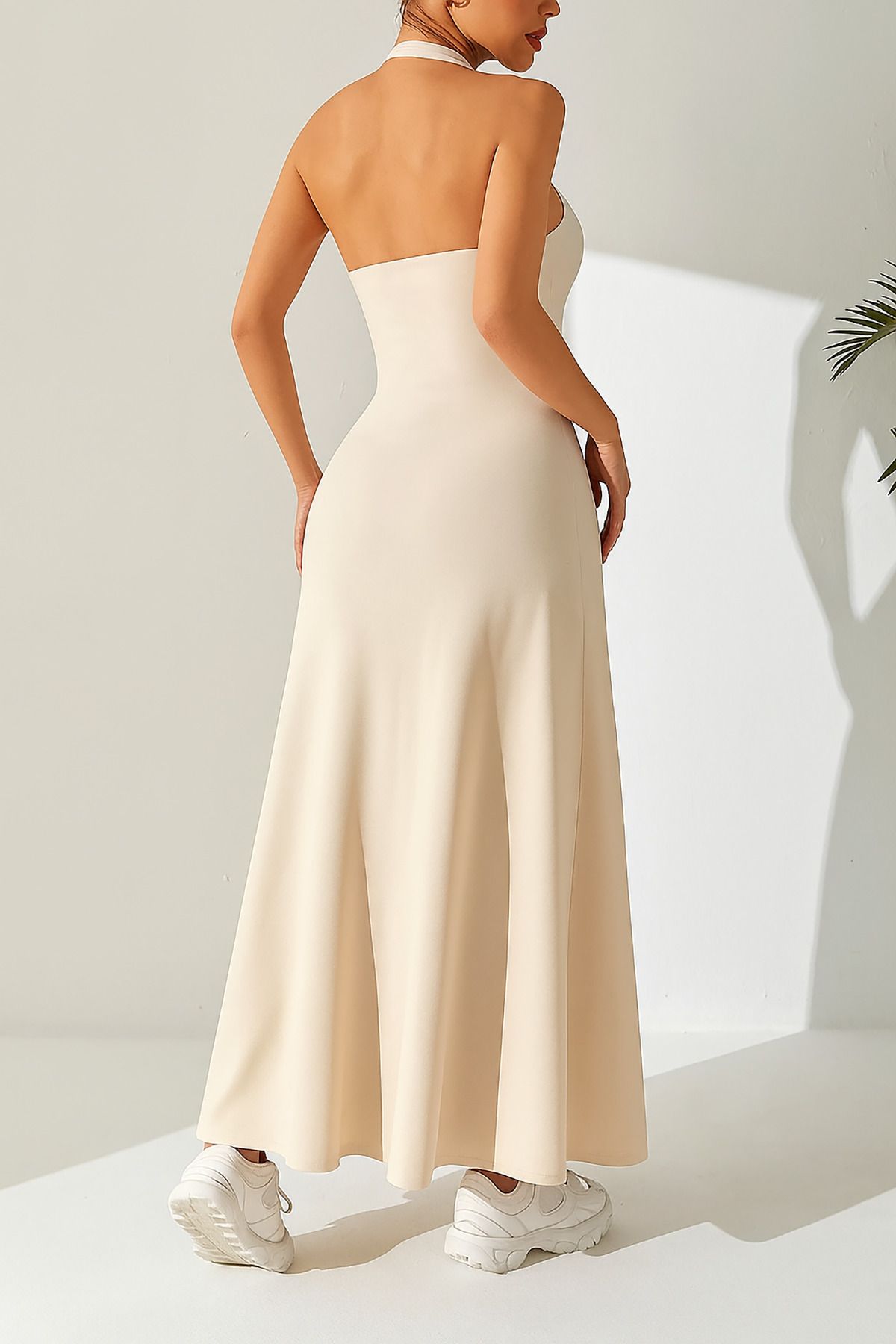 Bej Kadın Boyundan Geçirmeli Sırt Dekolteli Scuba Krep Kumaş Uzun Elbise Bej Kadın Boyundan Geçirmeli Sırt Dekolteli Scuba Krep Kumaş Uzun Elbise DFX395790 XL